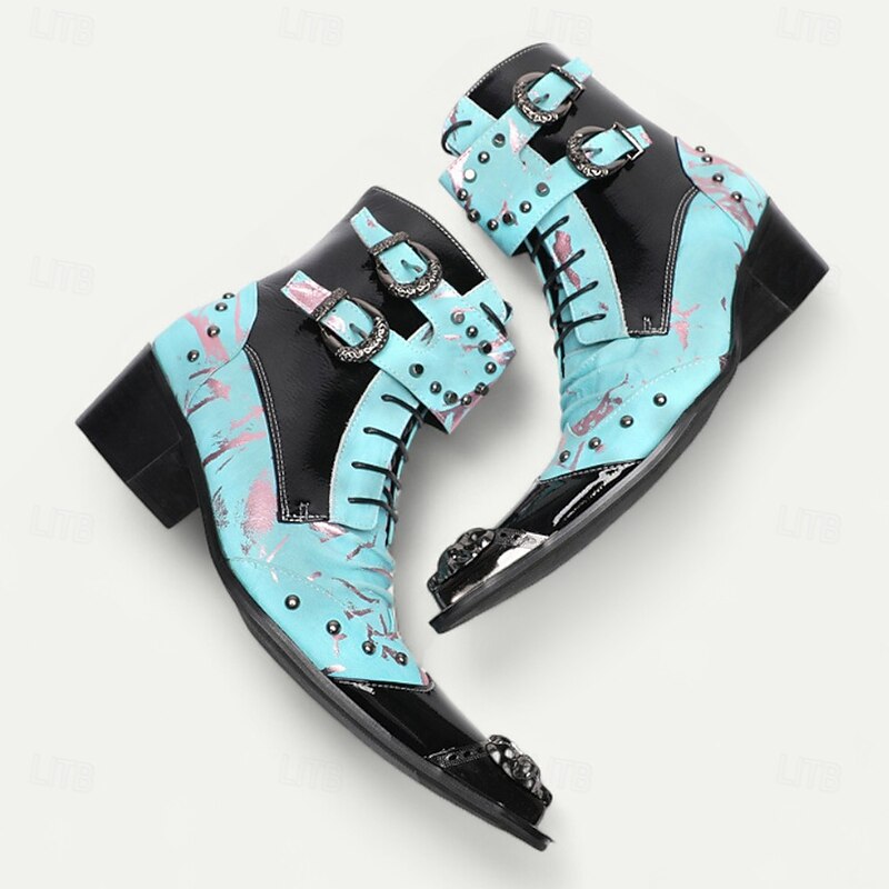 This Men's Vintage Cowboy Ankle Boots – Genuine Cowhide Leather with Blue Pattern, Pointed Toe and Buckle Straps for Western Dance, Stage Performance and Party Wear combines elegant design with practical functionality. Every detail has been carefully considered to ensure you get the best possible experience. The high quality construction means this product will serve you well for years to come.