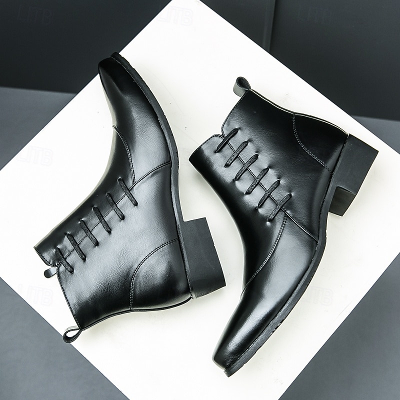 Men's Faux Leather Lace-Up Ankle Boots – Classic Formal Business Dress Shoes for Office and Evening Events 24