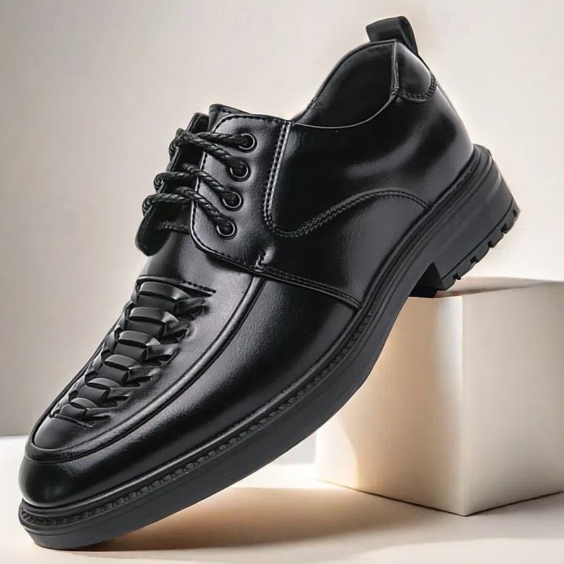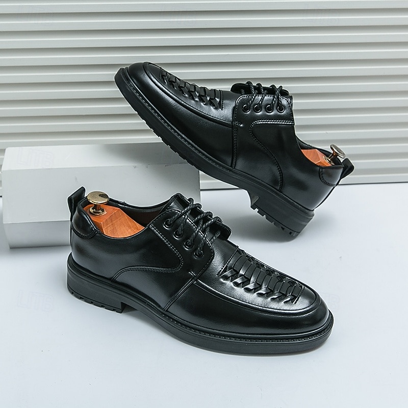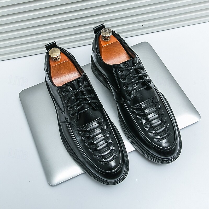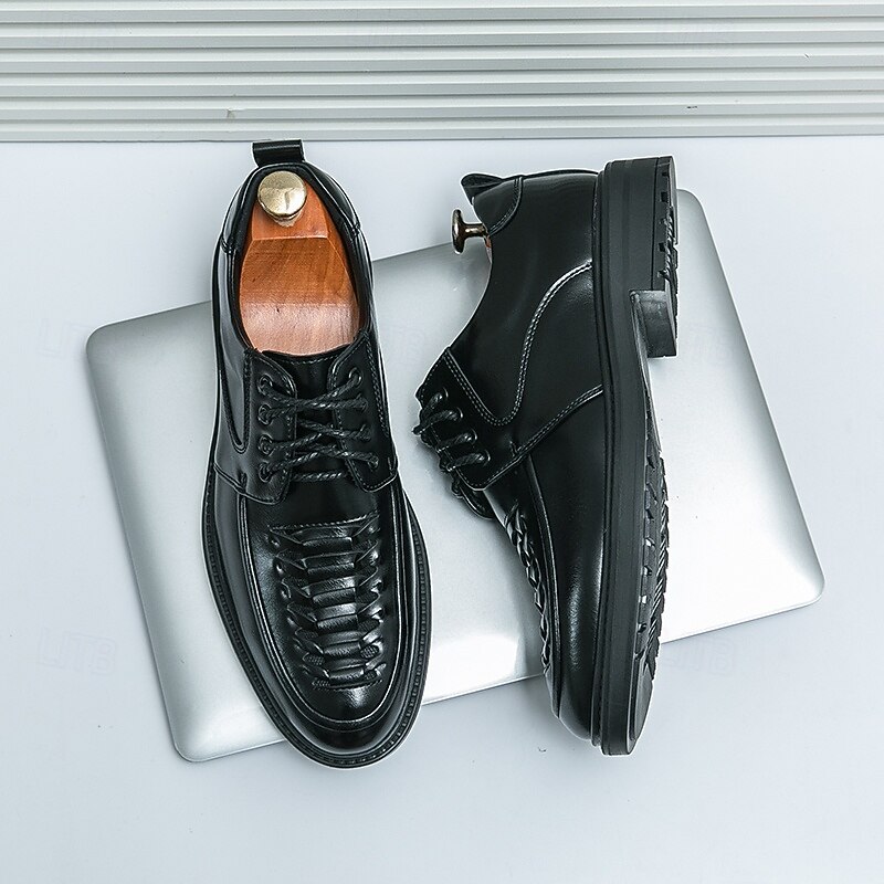 Why Choose Men's Dark Brown Derby Shoes - Faux Leather with Toe-Cap Weaving Design, Stylish and Versatile Footwear for Men, Perfect for Casual, Office and Everyday Wear?