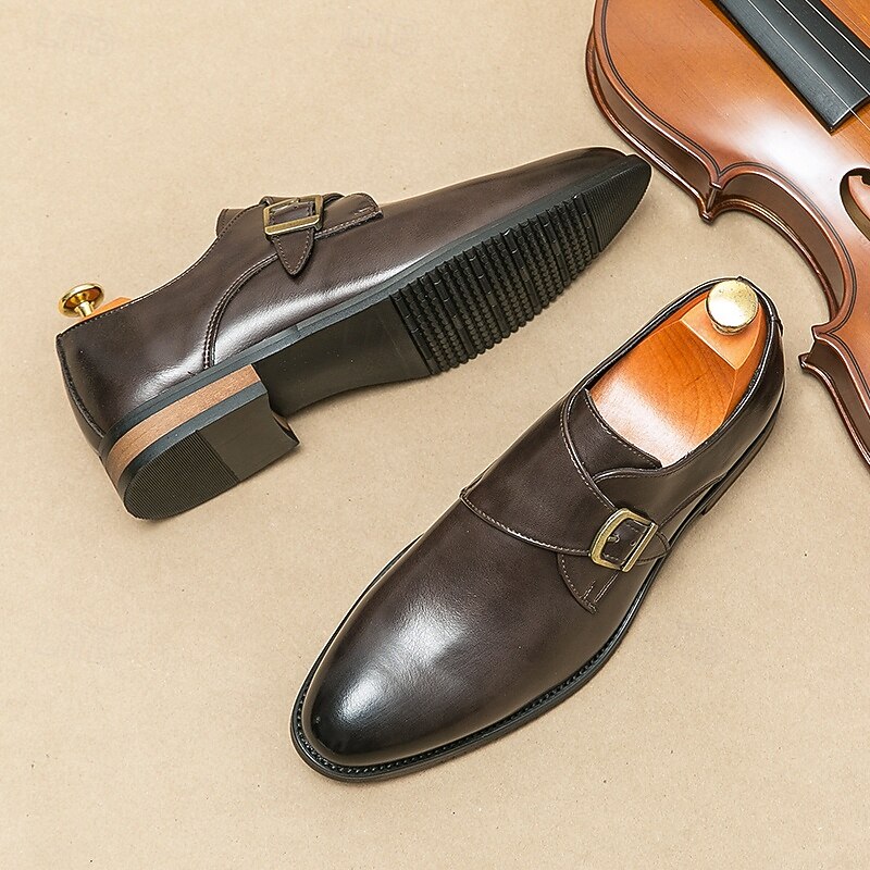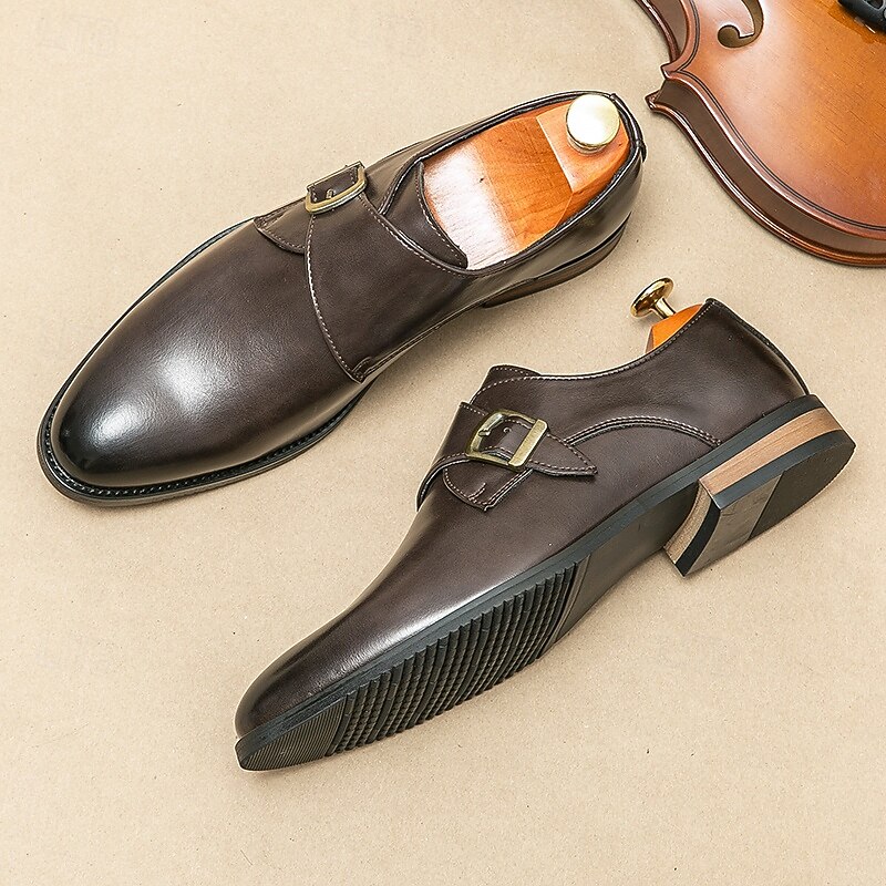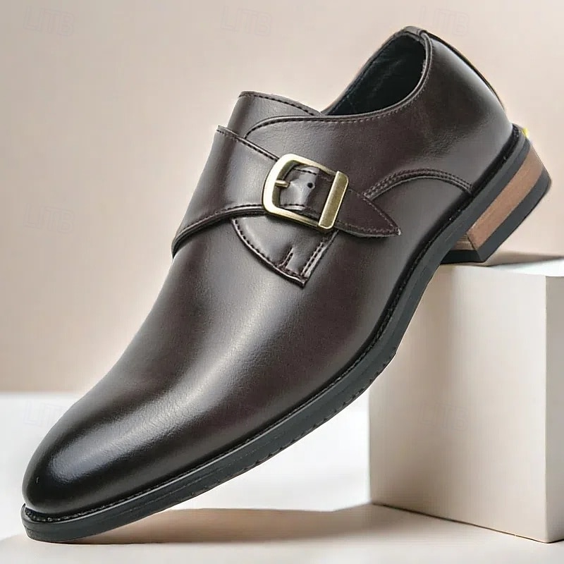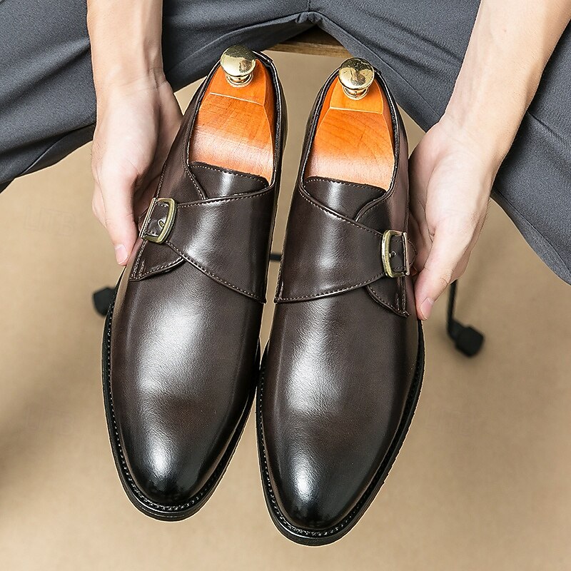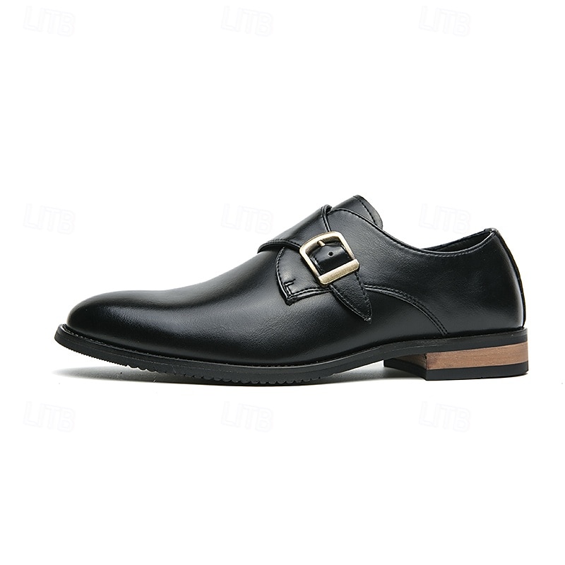 Men's Black Faux Leather Monk Strap Shoes - Classic Buckle Design for Formal Events and Office Wear 1