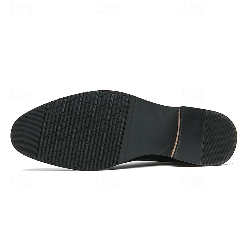 Men's Black Faux Leather Monk Strap Shoes - Classic Buckle Design for Formal Events and Office Wear 6