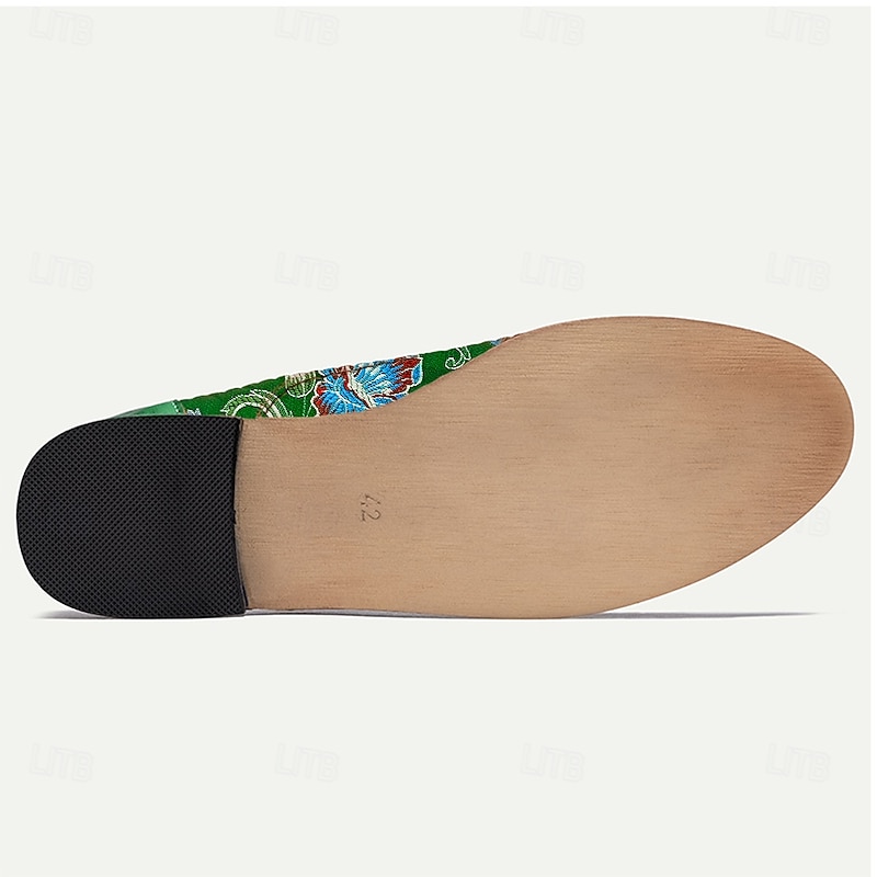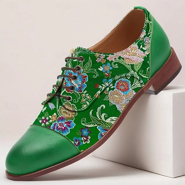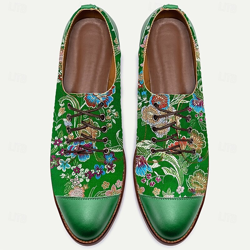 More information about Men's Shoes Green Jacquard Fabric Lace-Up Shoes with Floral Embroidery and Classic Design for Casual and Semi-Formal Occasions