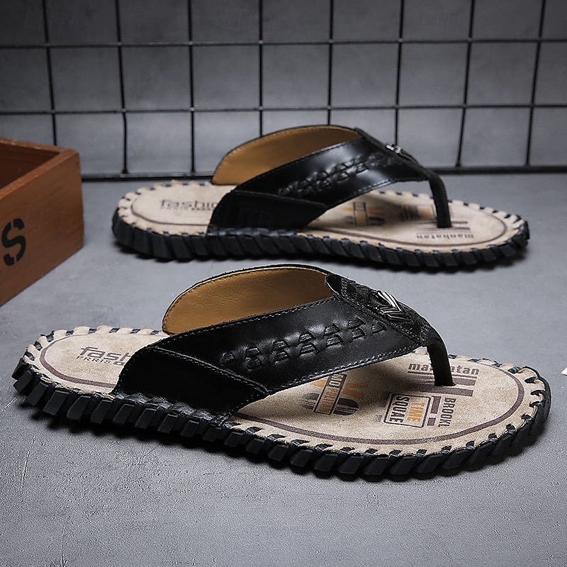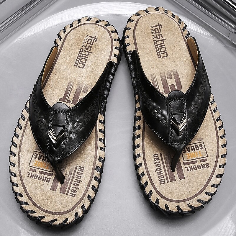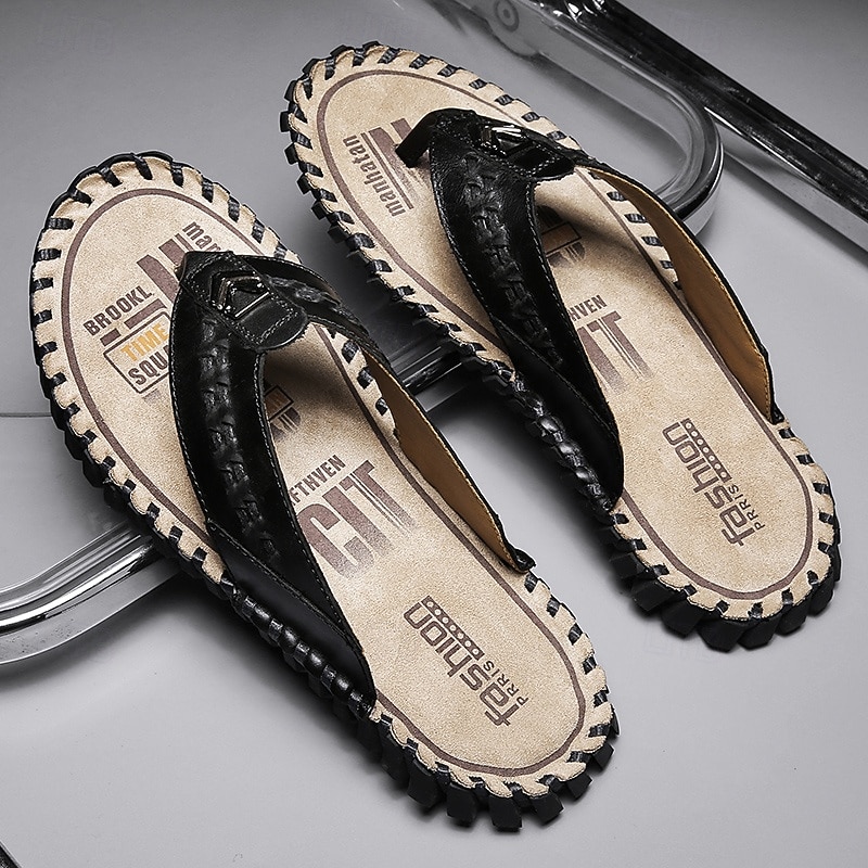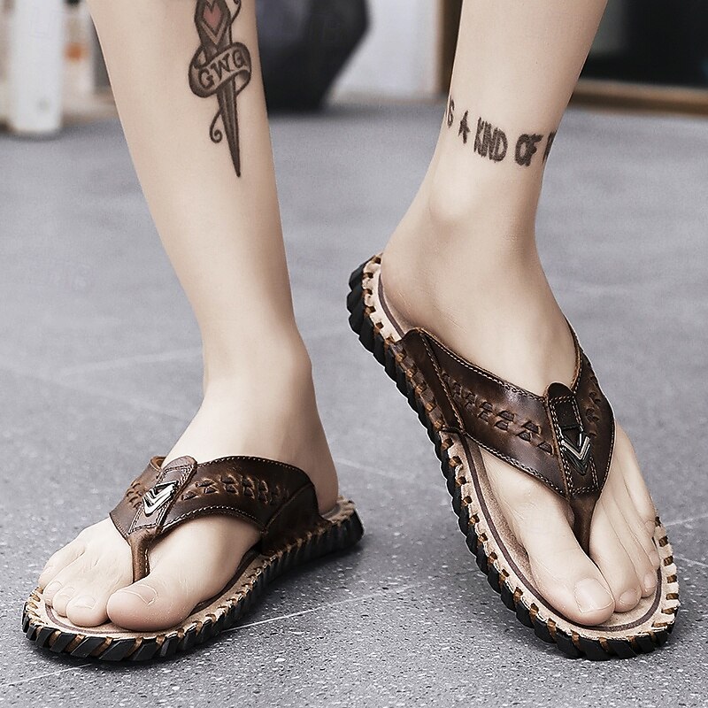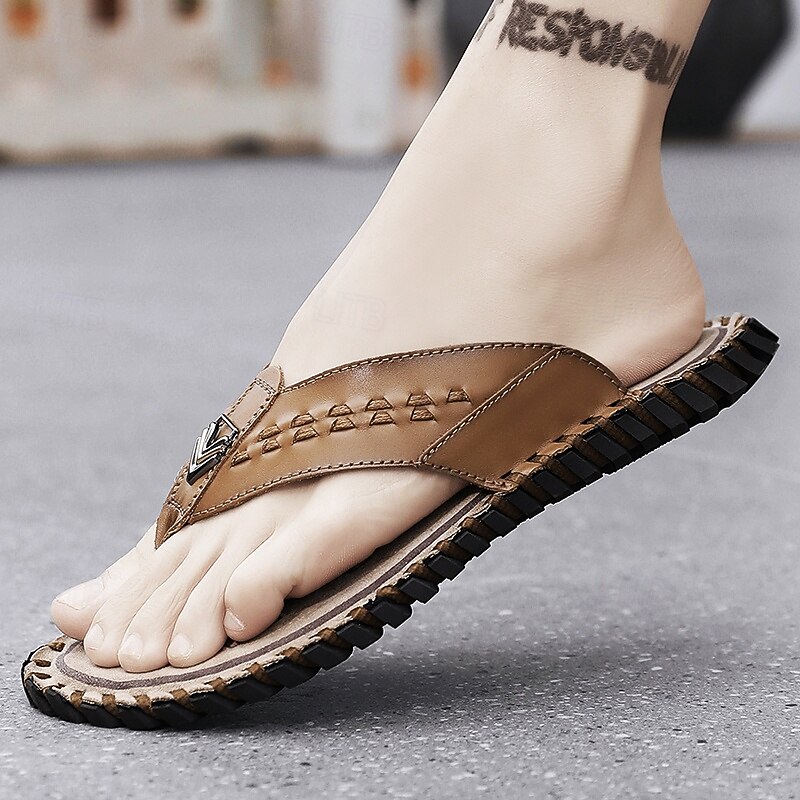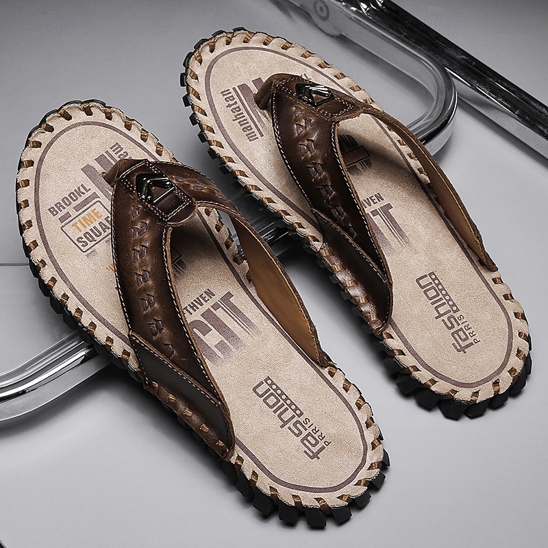 Men's Brown Faux Leather Flip-Flop Sandals – Comfortable and Durable with Adjustable Strap and Textured Sole, Ideal for Casual Wear, Beach and Outdoor Activities 31