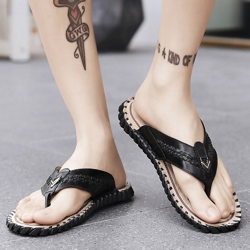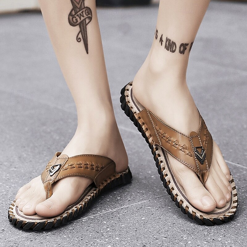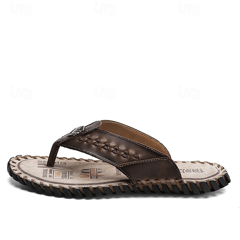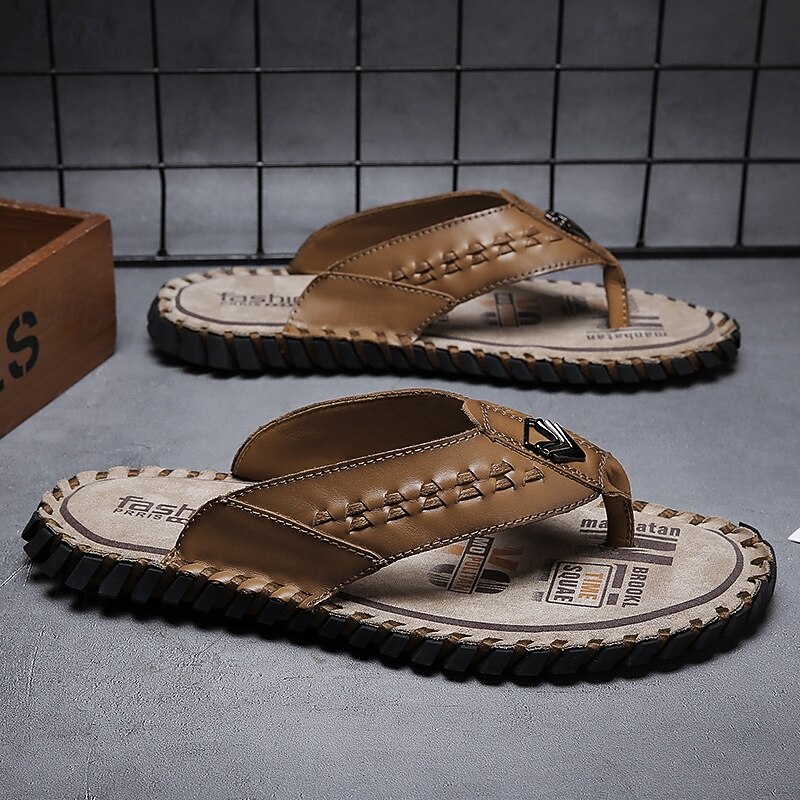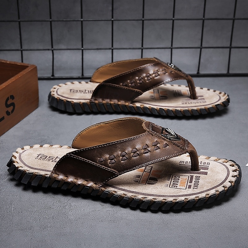 Men's Brown Faux Leather Flip-Flop Sandals – Comfortable and Durable with Adjustable Strap and Textured Sole, Ideal for Casual Wear, Beach and Outdoor Activities 28