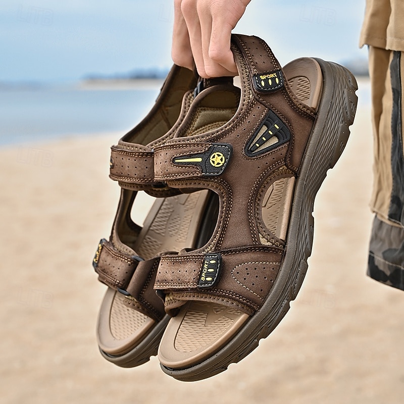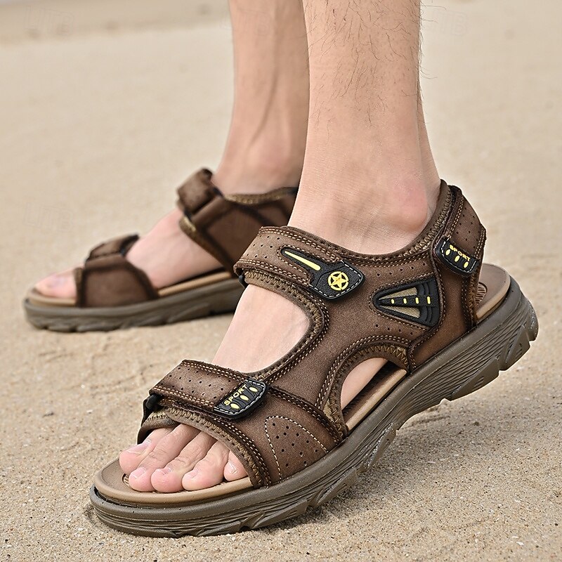 Men's Brown Sport Sandals with Adjustable Velcro Straps, Breathable Design and Durable Sole for Outdoor, Hiking and Casual Summer Wear 1