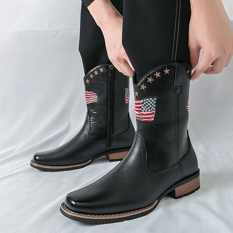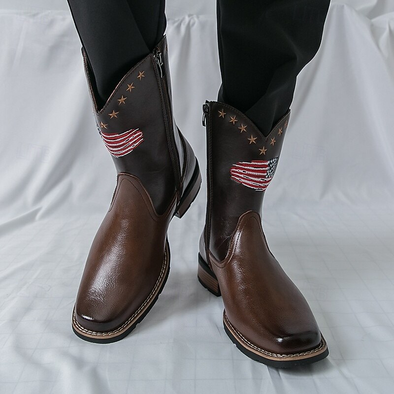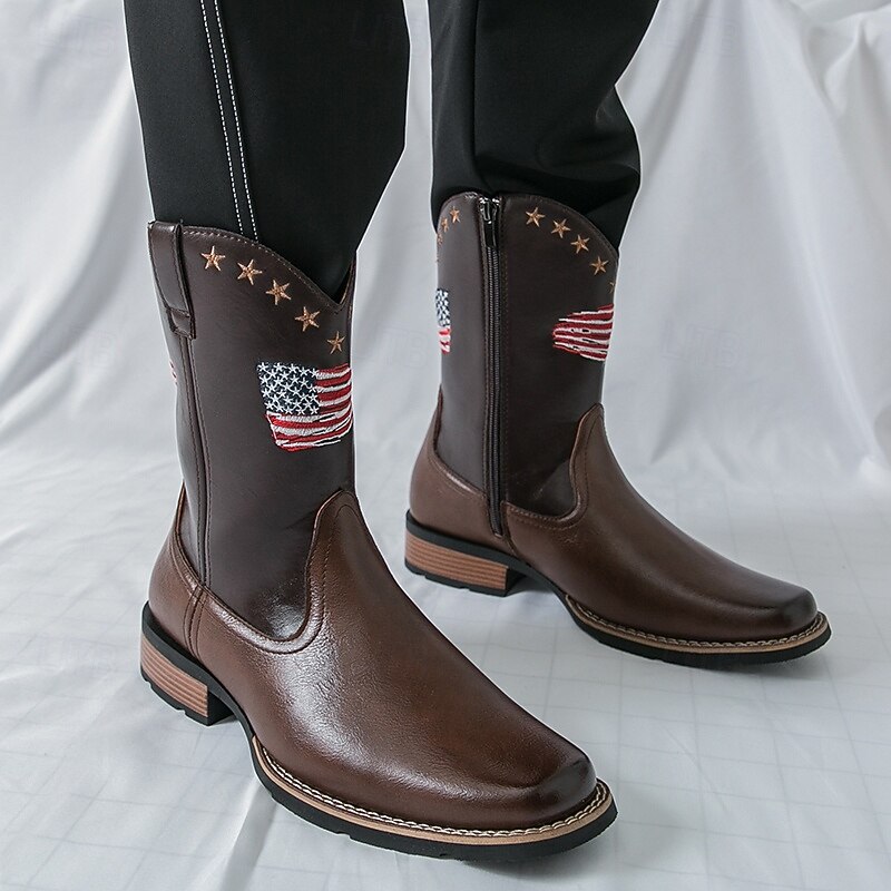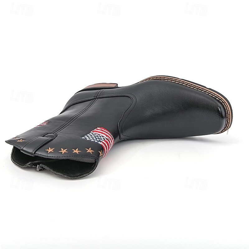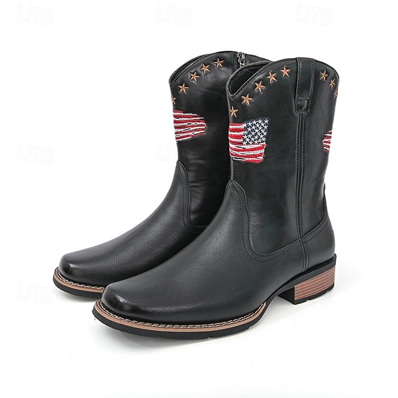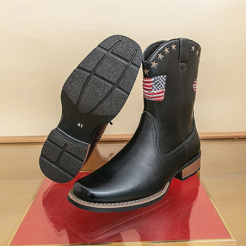 This Men's Western Cowboy Boots with American Flag Embroidery, Square Toe Design, Durable Outsole, Patriotic Rodeo Style Footwear for Ranch, Country Music Festivals, Horse Riding and Outdoor Wear combines elegant design with practical functionality. Every detail has been carefully considered to ensure you get the best possible experience. The high quality construction means this product will serve you well for years to come.