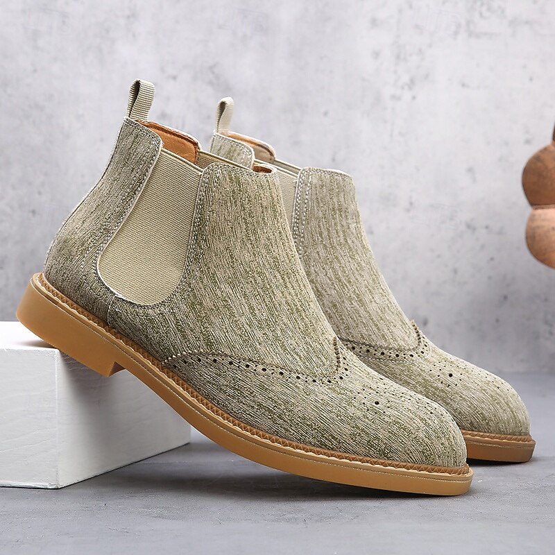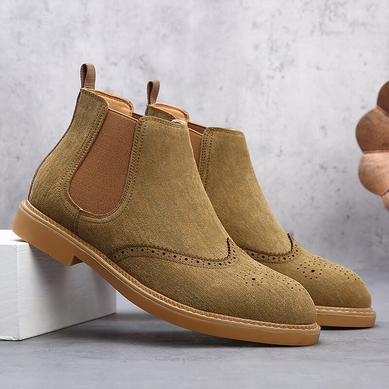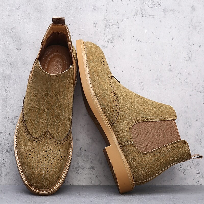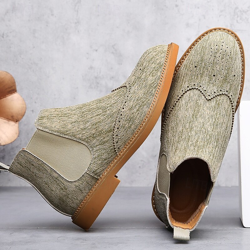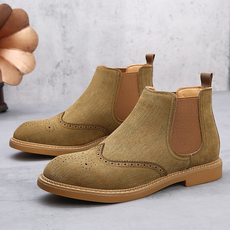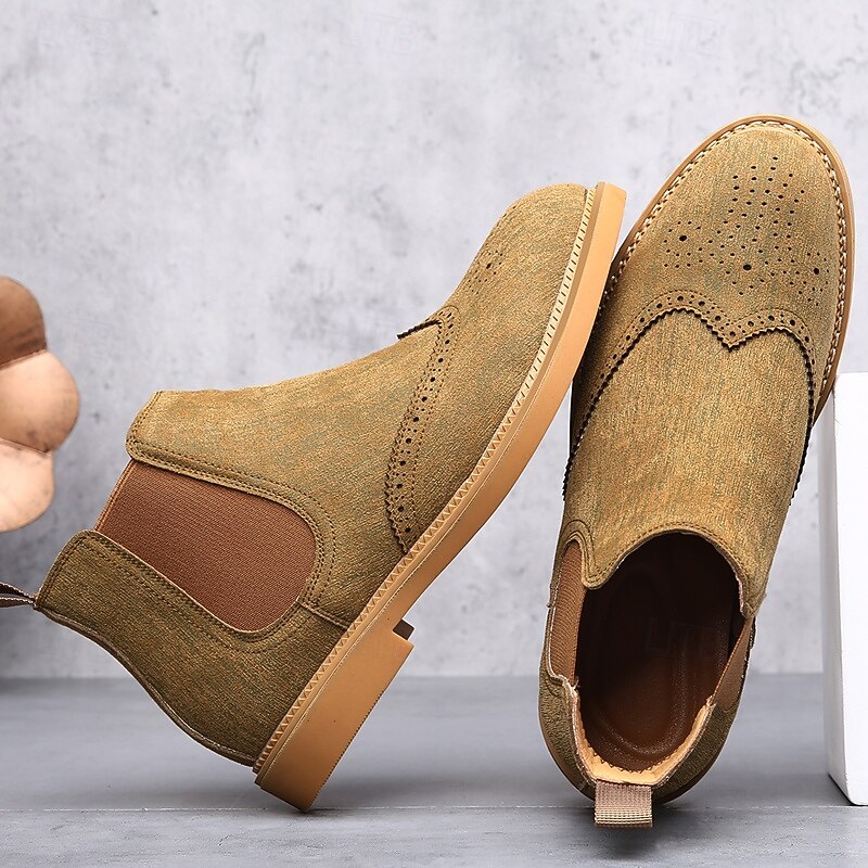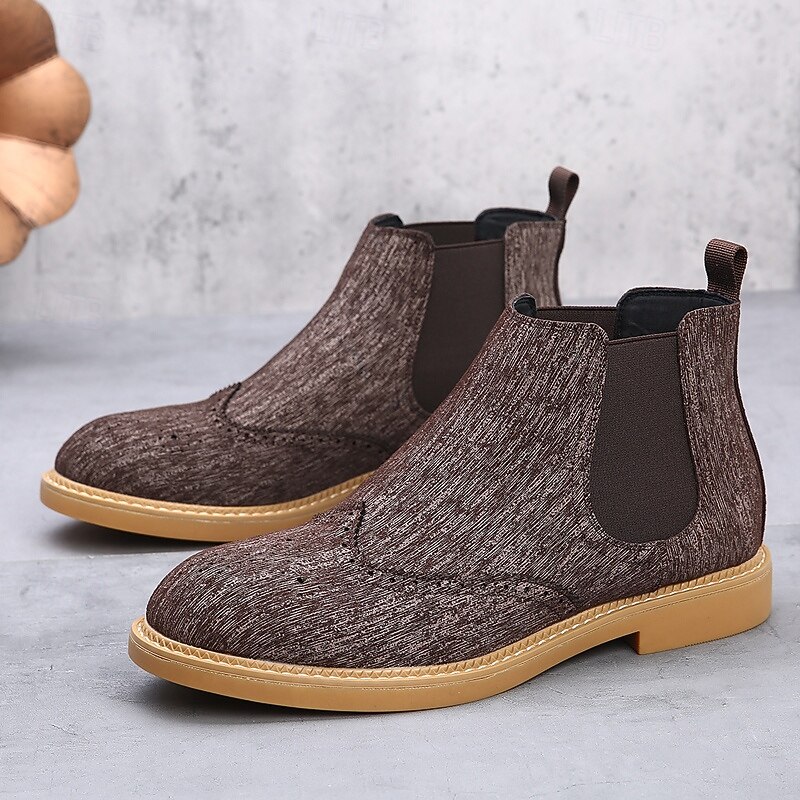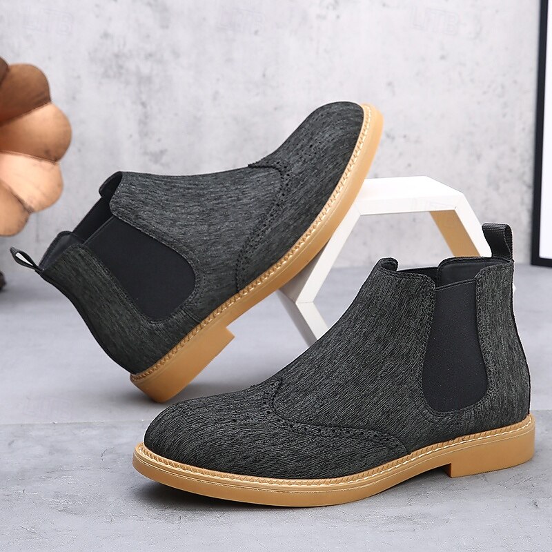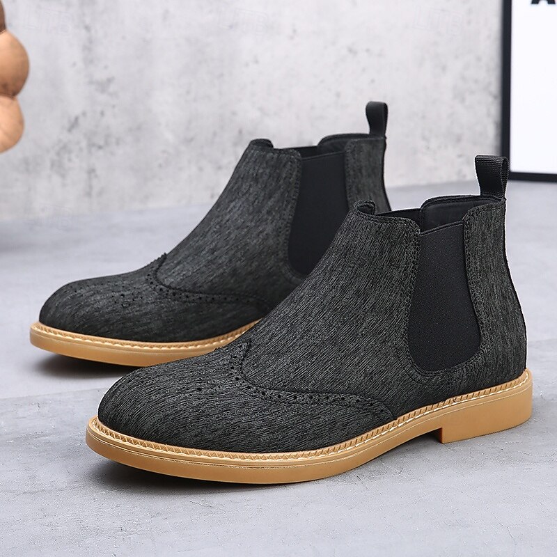 Why Choose Men's Gray Chelsea Boots with Wingtip Brogue Detailing Elegant Vintage Style for Weddings, Work and Semi-Formal Occasions?