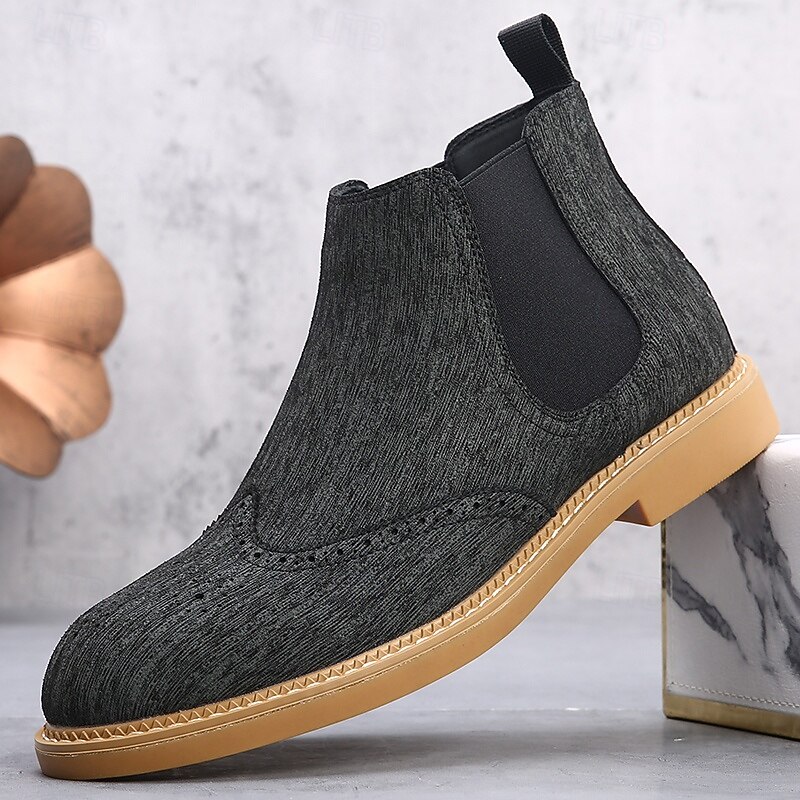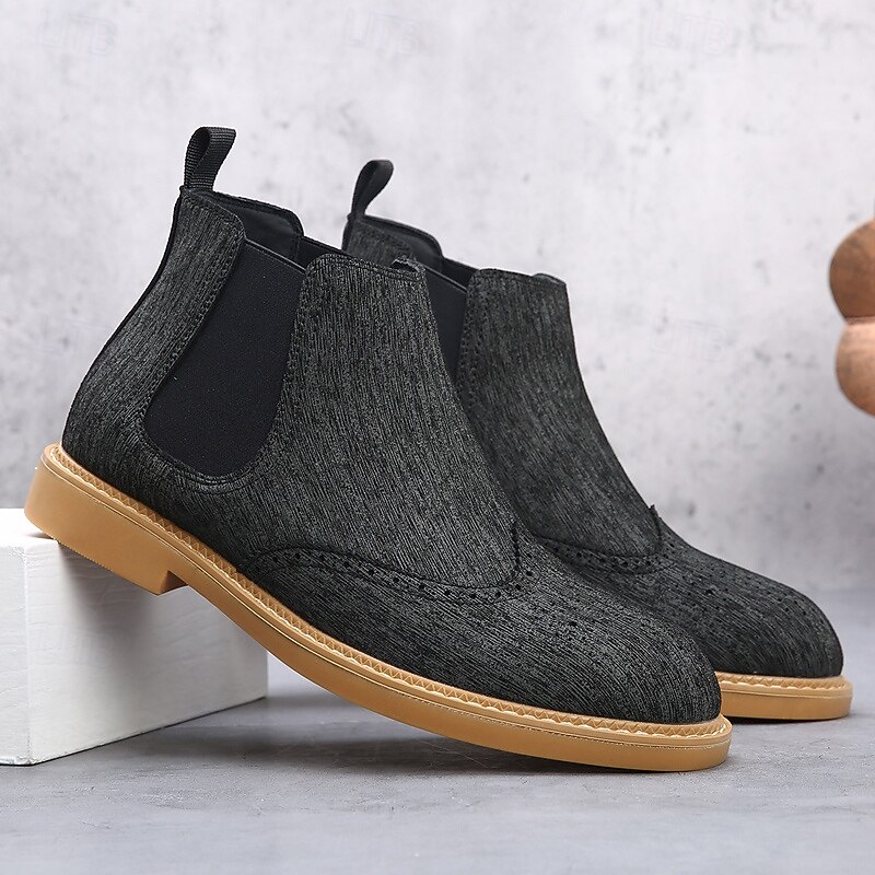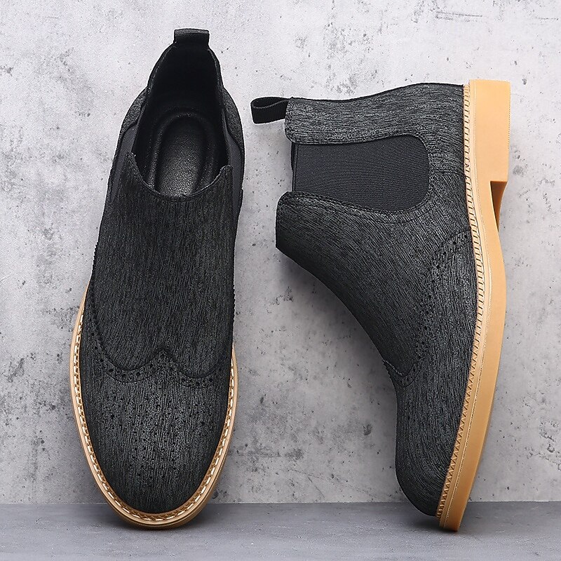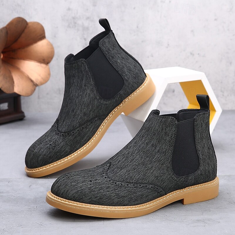 This Men's Gray Chelsea Boots with Wingtip Brogue Detailing Elegant Vintage Style for Weddings, Work and Semi-Formal Occasions combines elegant design with practical functionality. Every detail has been carefully considered to ensure you get the best possible experience. The high quality construction means this product will serve you well for years to come.