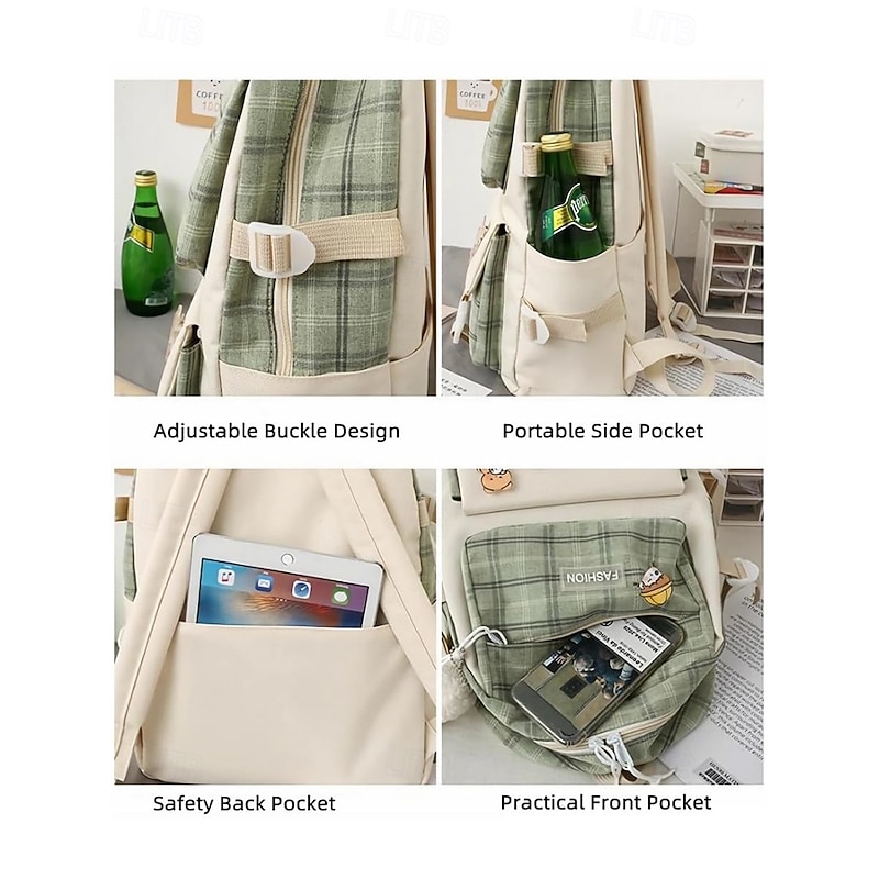 This Girls 5-piece school backpack set with messenger bag, Pencil bag, Coin purse - Cute patchwork plaid design, Lightweight and durable, Suitable for teenagers and daily use combines elegant design with practical functionality. Every detail has been carefully considered to ensure you get the best possible experience. The high quality construction means this product will serve you well for years to come.