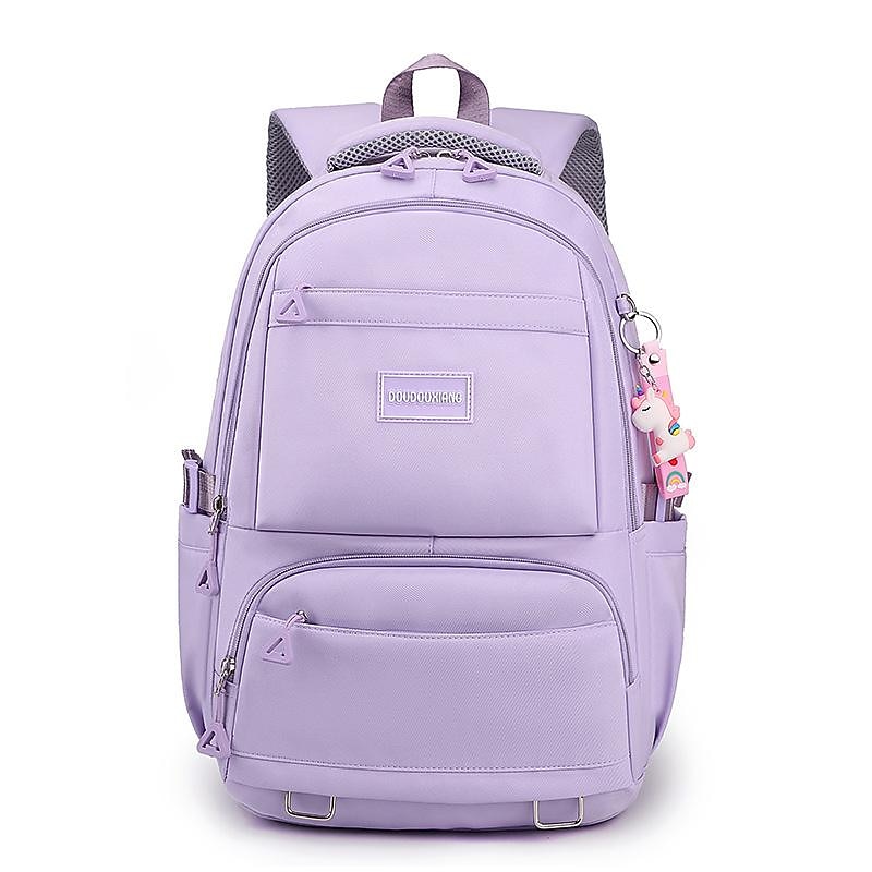 Girls' Large Capacity School Backpack with Luggage Strap and Cartoon Keychain – Lightweight Waterproof Travel Bag for Teen Students or Daily Commute 15