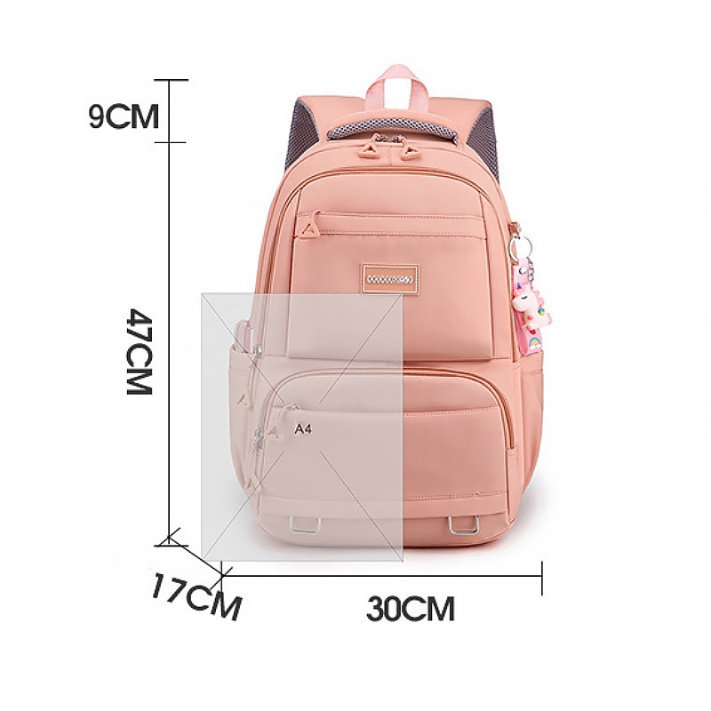 Girls' Large Capacity School Backpack with Luggage Strap and Cartoon Keychain – Lightweight Waterproof Travel Bag for Teen Students or Daily Commute 17