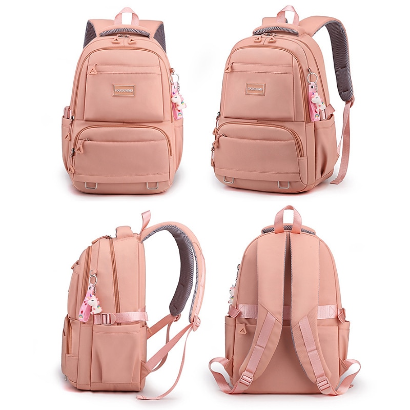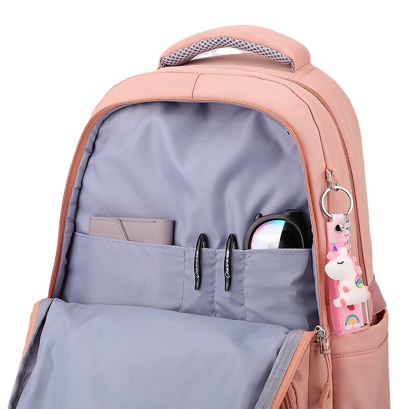 Girls' Large Capacity School Backpack with Luggage Strap and Cartoon Keychain – Lightweight Waterproof Travel Bag for Teen Students or Daily Commute 19