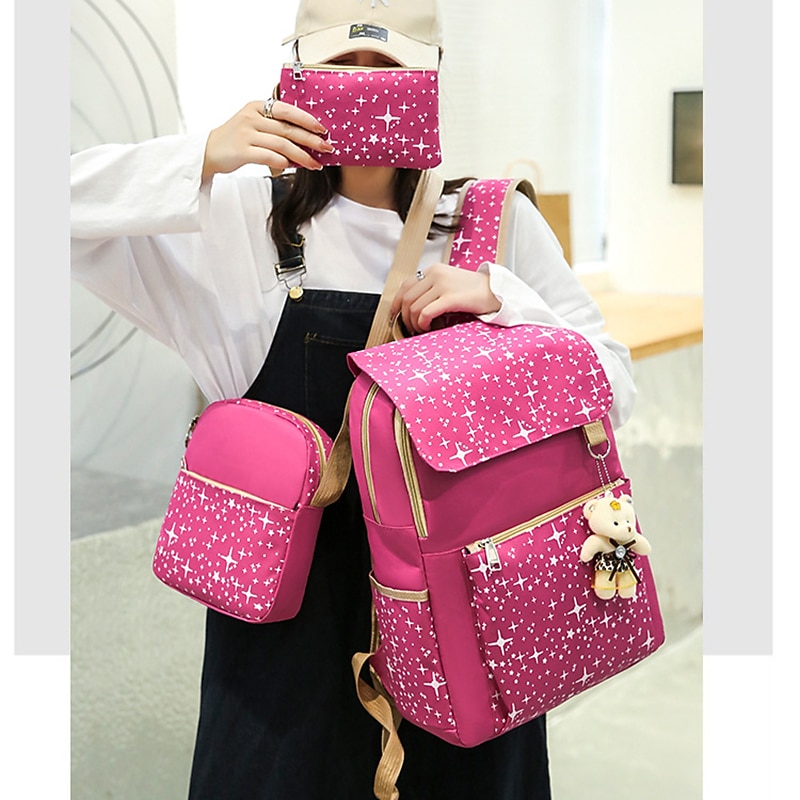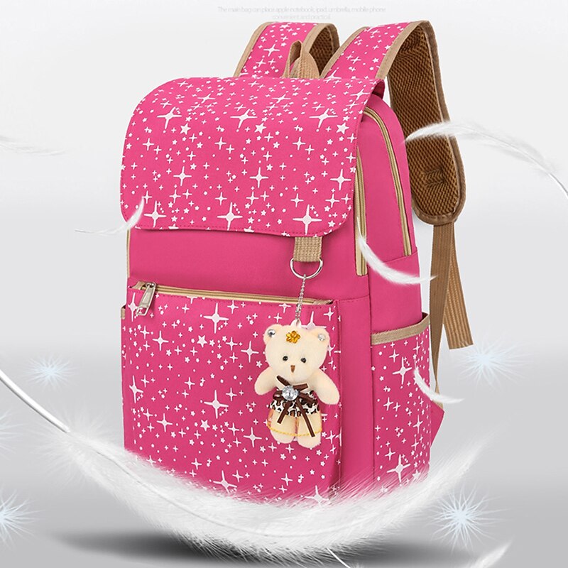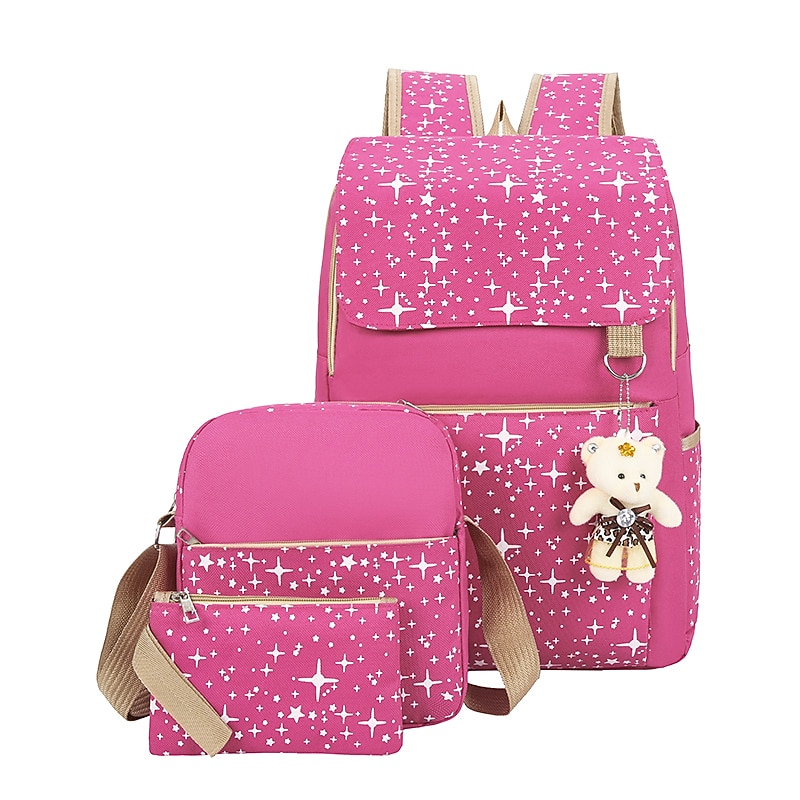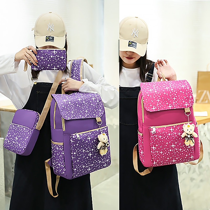 4-Piece Starry Backpack Set for Girls - Includes Backpack, Shoulder Bag, Purse, and Pencil Case - Available in Pink, Purple, Blue, and Black