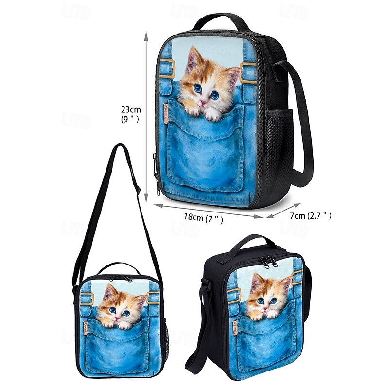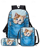 $34.99 - Kid's 3-Piece Denim Pocket Cat Print Backpack Set by Kayomi Harai- Cute Cartoon Design, Insulated Lunch Bag, Adjustable Shoulder Strap, Great for School, Travel and Daily Use 2025. Shop for cheap Kids & Teen Backpacks online? Buy at lightinthebox.com on sale today!