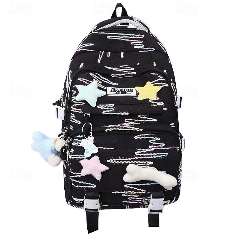 Kids and Teen Girls' Kawaii Backpack – Red Cartoon School Bag with 3D Star and Bone Charms for Daily Use and Travel 1