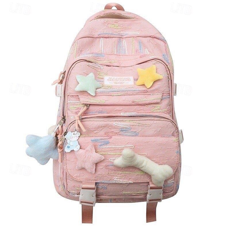 Kids and Teen Girls' Kawaii Backpack – Red Cartoon School Bag with 3D Star and Bone Charms for Daily Use and Travel 7