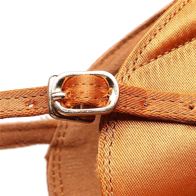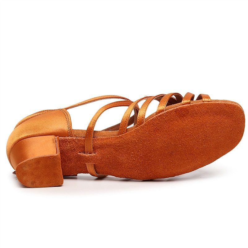 Women's Tan Strappy Low Heel Latin Dance Shoes with Soft Suede Sole – Breathable Satin Ballroom Sandals for Practice & Performance 7