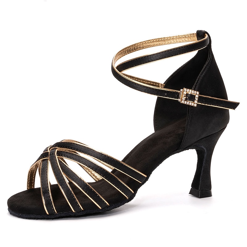 Highlights [Fabric] Expertly crafted with a satin upper, these women’s Latin dance shoes feature a luxurious and shiny finish, lending an air of sophistication to your dance attire. The shoes are designed with leopard embellishments, adding a touch of bold elegance. [Fit] Tailored with an open toe design and multiple crisscross straps, these shoes ensure a comfortable and secure fit, perfect for both performance and practice. The mid-heel height, classified as a Cuban heel, provides the ideal balance between style and support. [Design Highlights] These shoes feature an adjustable ankle strap with a secure buckle, offering stability during intricate footwork. The cushioned insole enhances comfort for prolonged use, while the suede outsole provides excellent grip, facilitating easy turns and spins on the dance floor. [Occasions] Ideal for a variety of dance settings, from salsa and chacha to ballroom performances and practices. These versatile shoes are suitable for both professional events and casual practice sessions, making them a perfect choice for dancers seeking both functionality and flair. [Size] Available in a broad range of sizes from 34 to 42, ensuring a suitable fit for most dancers. It is recommended to choose your usual size for optimal comfort and fit. Perfect for everyday use. High quality materials and excellent craftsmanship ensure long-lasting durability.