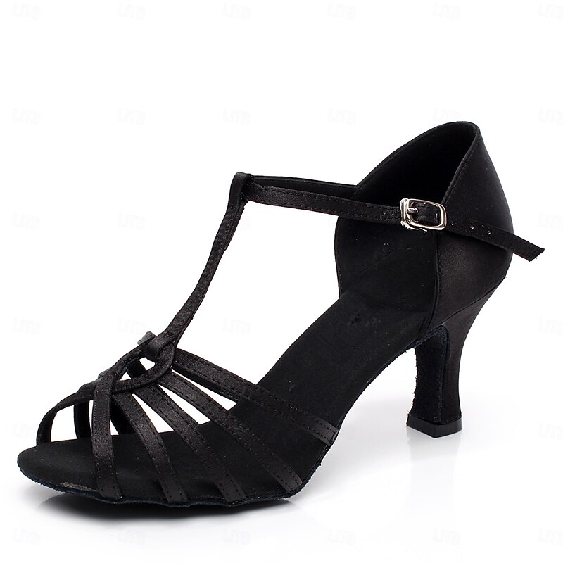 Women's Latin Dance Shoes with Strappy Design, Satin Open-Toe Ballroom Heels for Professional and Social Dancing 1
