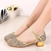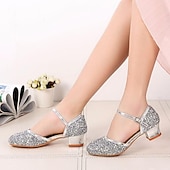 Highlights [Fabric] Designed with a shimmering glitter upper, these dance shoes provide an eye-catching sparkle that's perfect for performances and special occasions. The high-quality sparkling material ensures both style and durability, allowing the shoes to withstand the demands of dance and celebration. [Fit] These shoes feature a classic, round-toe style that seamlessly blends comfort with contemporary fashion, offering ample room for your feet while maintaining a stylish look. The combination of a low, thick heel ensures stability and support, making them ideal for extended wear during performances or parties. [Design Highlights] The elegant ankle strap not only adds an element of sophistication but also ensures a secure fit. This strap is beautifully accented with a metallic finish that enhances the glamorous glitter, making these shoes a standout choice for any event. [Occasions] Perfect for a variety of events such as stage performances, ballroom dancing, parties, and weddings. These shoes are great for occasions when you want to make a lasting impression and add an element of sparkle to your ensemble. [Size Range] Available in a wide range of sizes from 26 to 39, ensuring a perfect fit for girls of various ages and sizes. This extensive size range makes it easy to find the right fit for your needs, ensuring comfort and style. Perfect for everyday use. High quality materials and excellent craftsmanship ensure long-lasting durability.