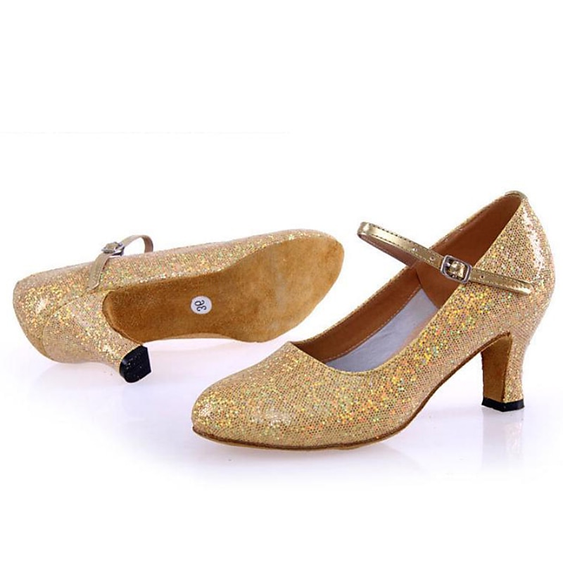 HOT ! Women's Silver Glitter Ballroom Dance Shoes with Suede Sole – Elegant Heels for Latin, Salsa, and Performance Dancing
