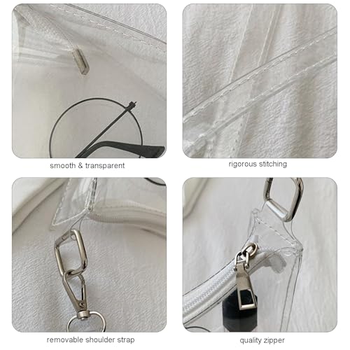• 【Multi Application】This strap length 21.65" and removable, clear bag for women can be used as a handbag or shoulder bag, clear purse can be matched with any outfit and the perfect fashion accessory for daily use, outdoor activities, party, concert, wedding, prom and work.