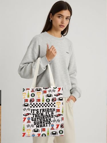 KUIYAI Racing Lovers Tote Bag Sunday Racing Shoulder Bag Checkered Flag Gift Game Day Gift Racer Team Canvas Bag