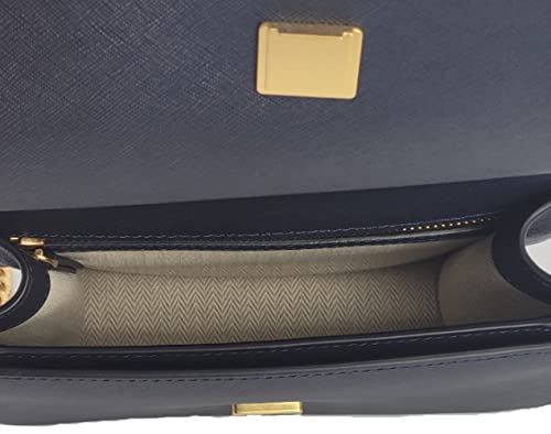- Tory Burch 136092 Emerson Flap Tory Navy Blue With Gold Hardware Women's Shoulder Bag - Dimensions: 7" x 8" x 3" - Dust bag not included