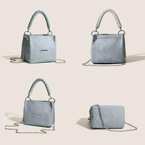 Why Choose Denim Bucket Bag with Rope Handle Small Chain Strap Compact Cute Y2K Jean Vintage Retro Handbag?
