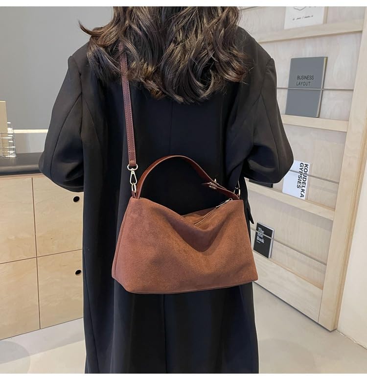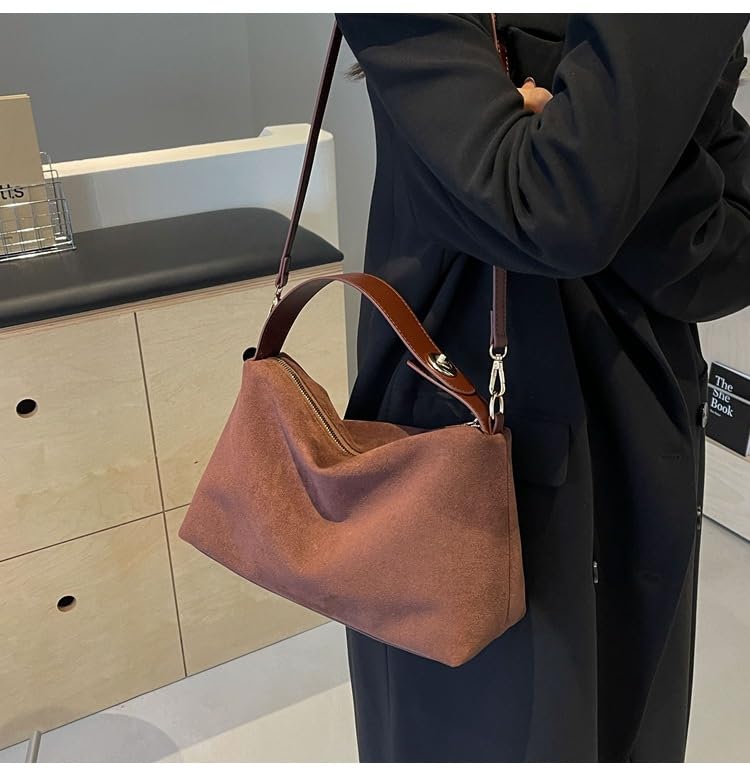 Suede Women Bag for Women Retro Suede Shoulder Bag Hobo Shoulder Bag with Zipper Closure