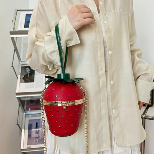 Cute Pu Leather Bag Purses Designer Shoulder Bags Strawberry Shape Bucket Bag Fashion Shiny Handbags with Detachable Chain 6