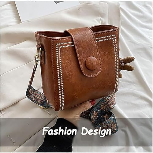 HOT ! Bootara Bucket Bag, Women's Vintage Bunny Charm Bucket Bag with Adjustable Wider Shoulder Strap Crossbody