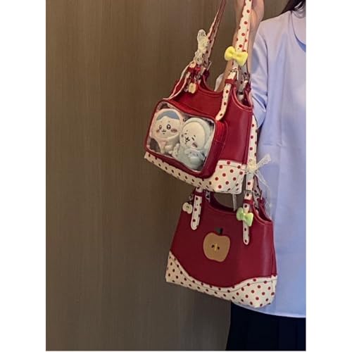 • Handbag matching: This red polka dot transparent bag, when paired with an A-line skirt, ballet shoes, short skirt, uniform, etc., can make you look more eye-catching and fashionable.The ingenious apple pattern can also be matched with anime accessories, pendants, lace straps, keychains, etc., making the shoulder bag look even cuter and more interesting