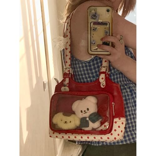 More information about Transparent Handbags for Women Red Double Side Polka Dots Whimsical Apple Shoulder Bag Whimsy Twee Funky Purse