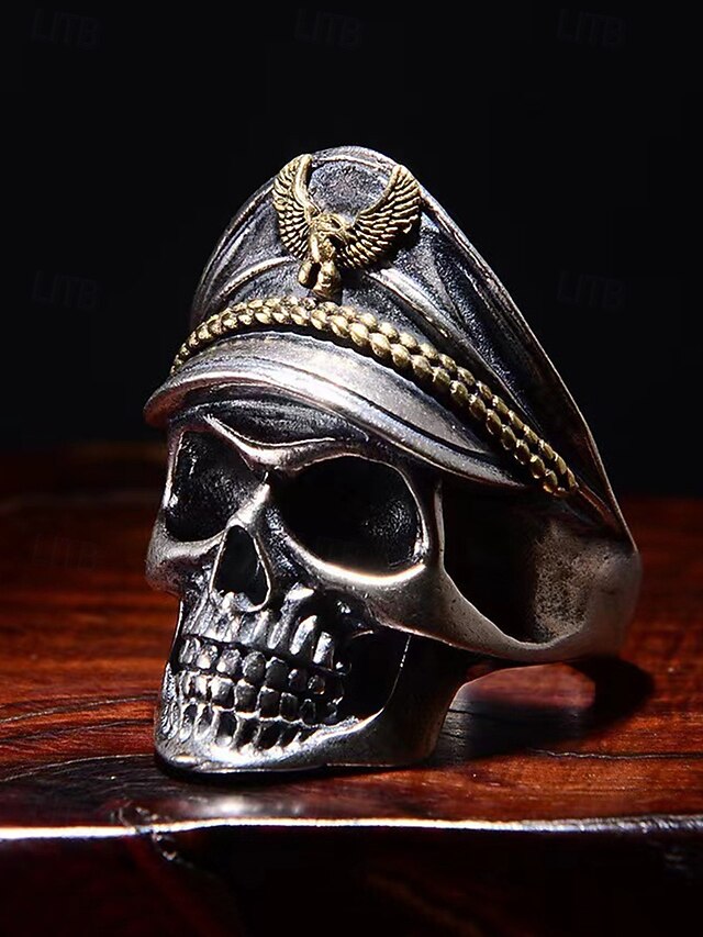 $7.99 - Men's Skull Ring with Officer Hat and Eagle Emblem – Adjustable Alloy Halloween Punk Jewelry for Biker and Gothic Style 2025. Shop for cheap Halloween Accessories online? Buy at lightinthebox.com on sale today!