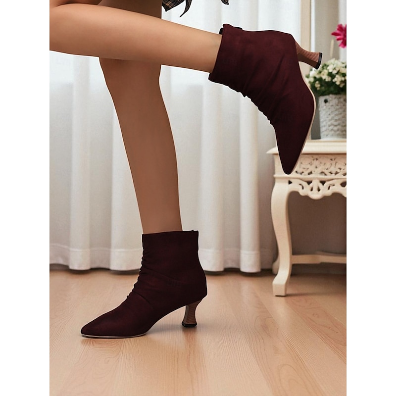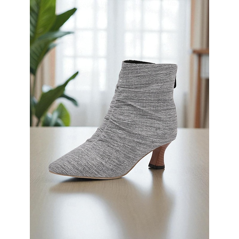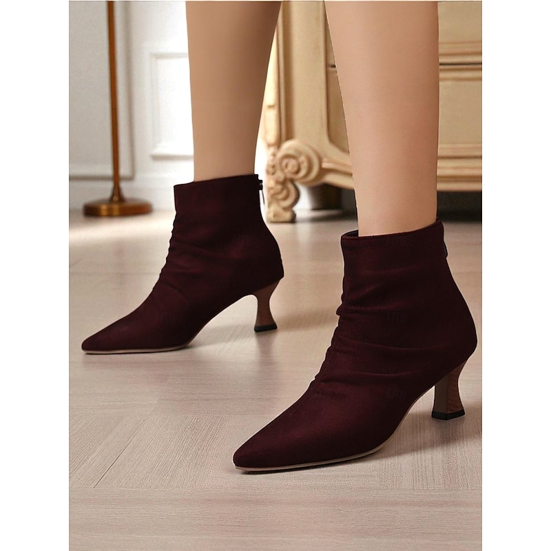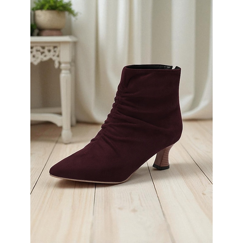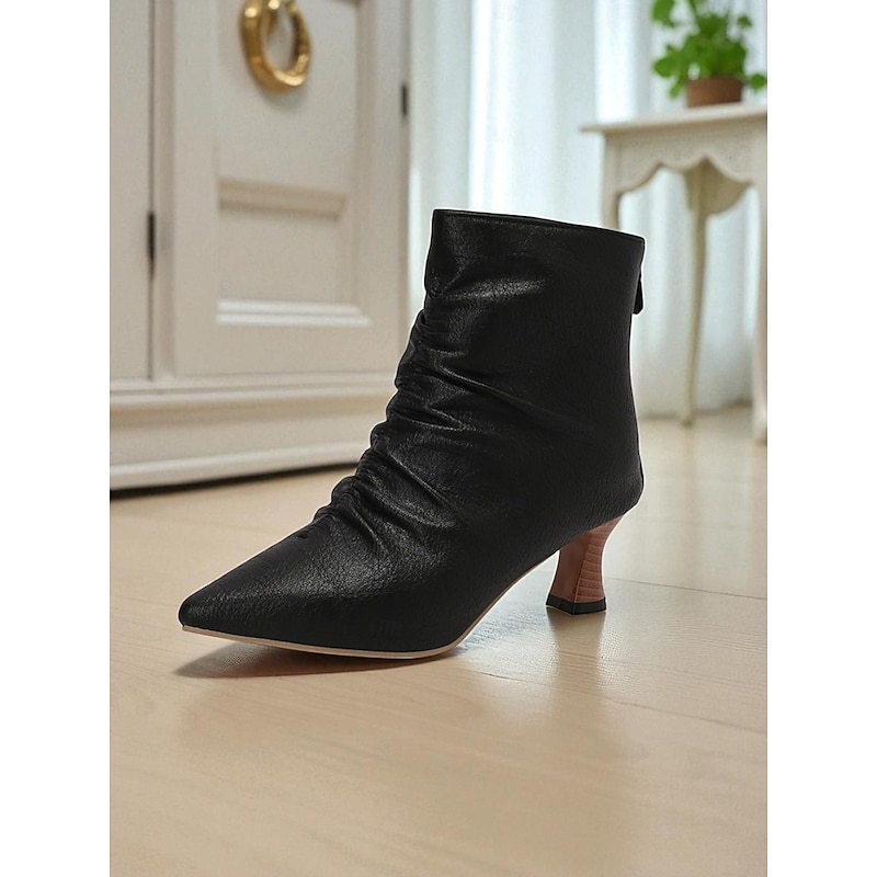More information about Women's Green Faux Leather Pointed Toe Ankle Boots with Ruched Design and Kitten Heels – Elegant Vintage Style Booties for Fall Office Outfits and Evening Wear