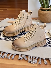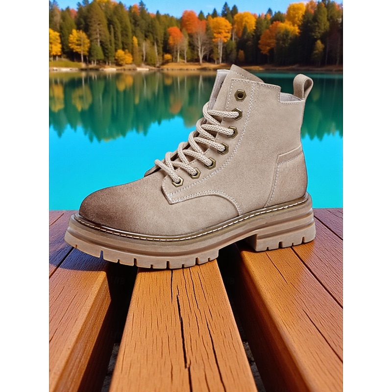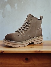 More information about Women's Brown Suede Lace Up Ankle Boots with Chunky Non Slip Sole -Casual Outdoor Workwear Hiking Boots for Fall and Winter