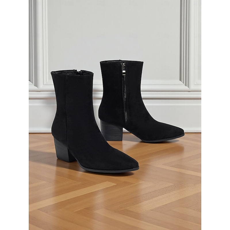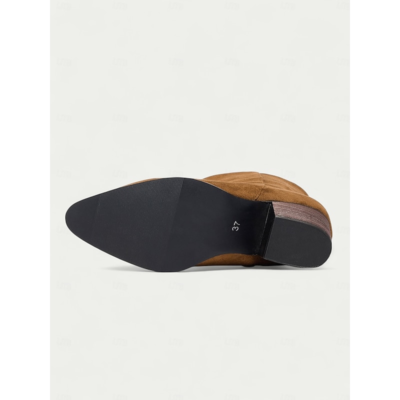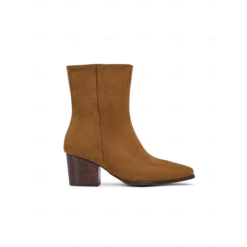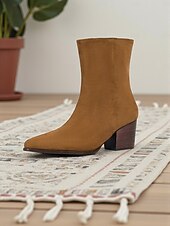 More information about Women's Suede Block Heel Ankle Boots- Brown Urban Fashion Short Boots for Women's Casual and Streetwear Outfits