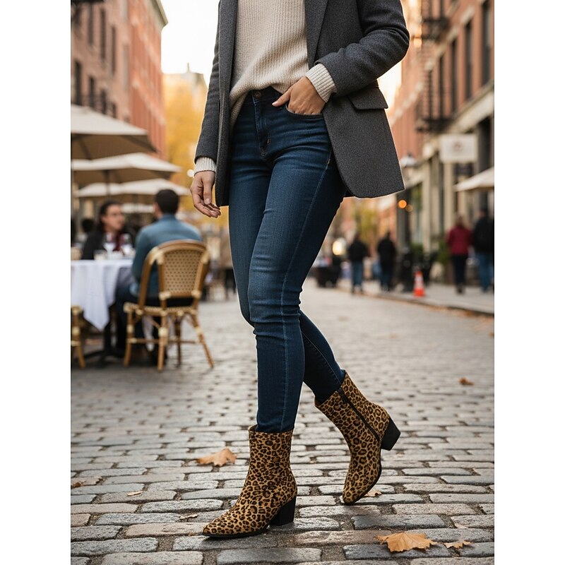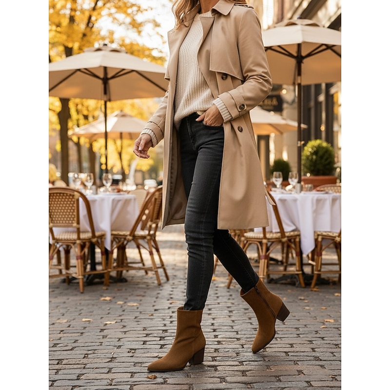 Women's Suede Block Heel Ankle Boots- Brown Urban Fashion Short Boots for Women's Casual and Streetwear Outfits 21
