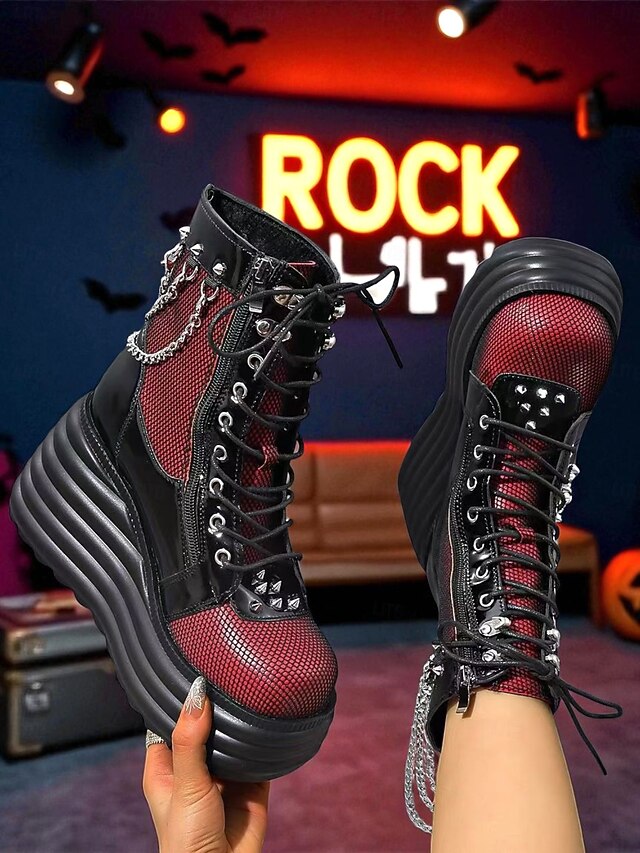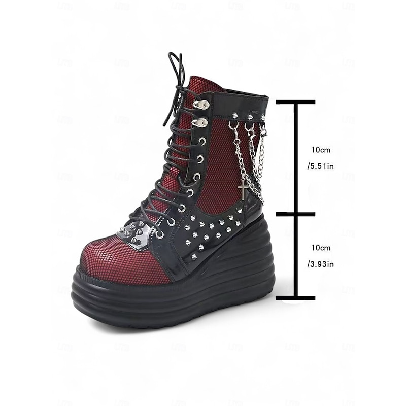 This Women's Red Mesh Platform Biker Boots with Studs and Chains - Gothic Punk Lace-Up High Heel Ankle Boots for Halloween, Concerts, and Alternative Streetwear combines elegant design with practical functionality. Every detail has been carefully considered to ensure you get the best possible experience. The high quality construction means this product will serve you well for years to come.
