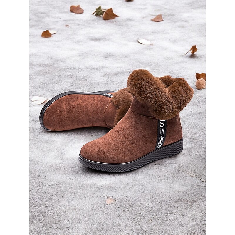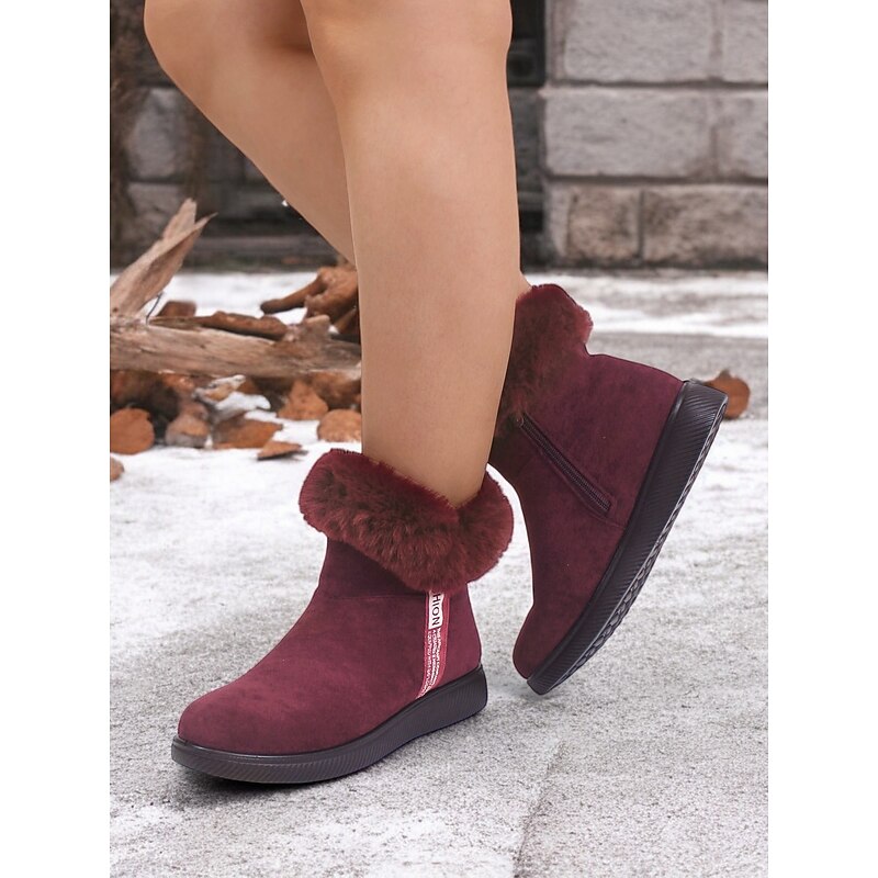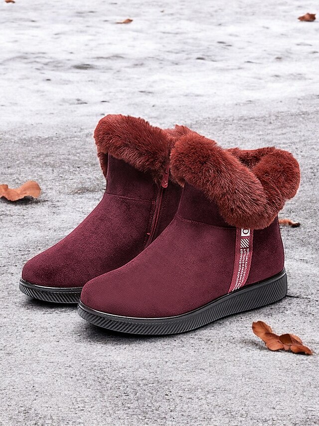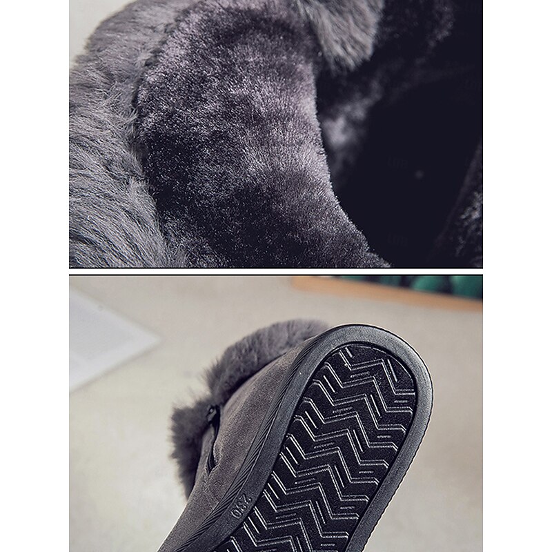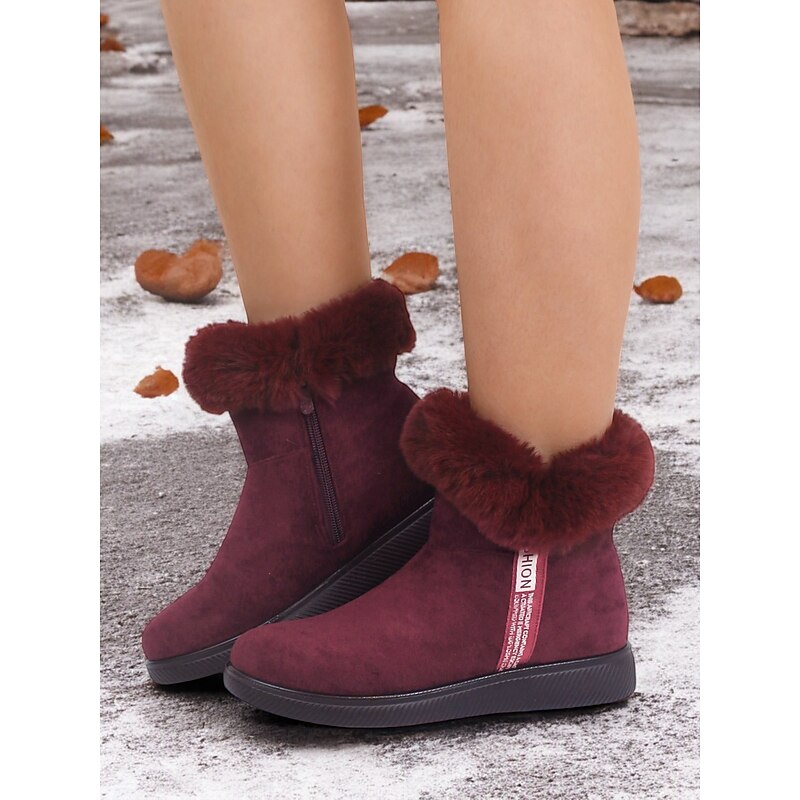 Highlights [Fabric] : Meticulously crafted from a soft velvety suede-like material complemented by a plush faux fur lining, these ankle boots offer both warmth and elegance. The durable rubber outsole enhances grip, ensuring stability on diverse surfaces during the chilly months. [Design] : These boots boast an ankle-length silhouette with a practical side zipper for effortless wear. The flat heel provides comfort for all-day wear, while the round toe shape adds a classic touch. Subtle design elements like the cozy fleece lining make them a perfect addition to your winter wardrobe. [Design Highlights] : The standout feature of these boots is the luxurious faux fur cuff that not only exudes sophistication but also provides additional warmth. The simplicity of the design is elevated by the plush texture and elegant appearance of the burgundy hue, making these boots a chic choice for both casual and outdoor settings. [Occasions] : Perfectly suited for daily casual outings or outdoor adventures in cooler weather, these boots seamlessly blend fashion with functionality. Whether it’s a leisurely walk through the park or a casual day out with friends, these boots ensure you step out in style. [Size Range] : Available in a variety of sizes from US5.5 to US10.5 / EU35 to EU42, these boots cater to a wide range of foot sizes, ensuring a comfortable fit for every wearer. Perfect for everyday use. High quality materials and excellent craftsmanship ensure long-lasting durability.