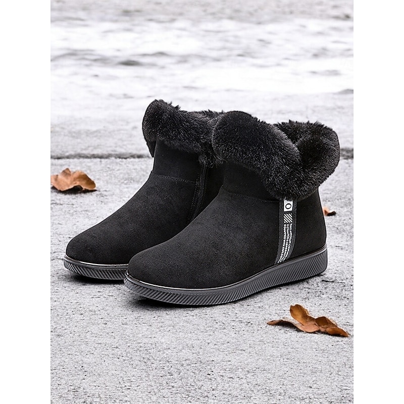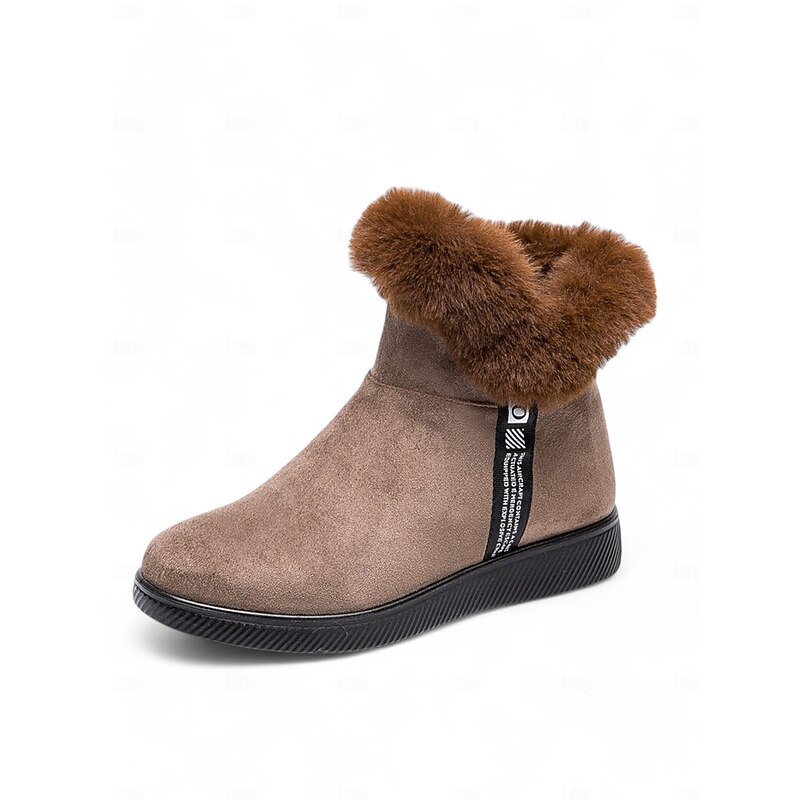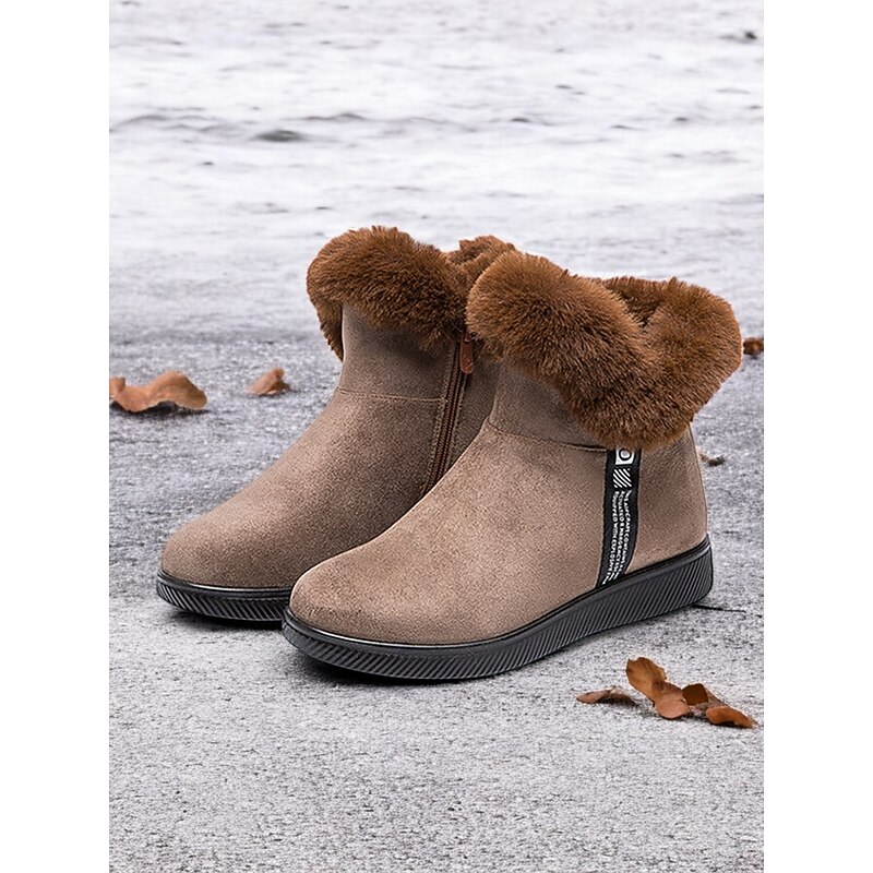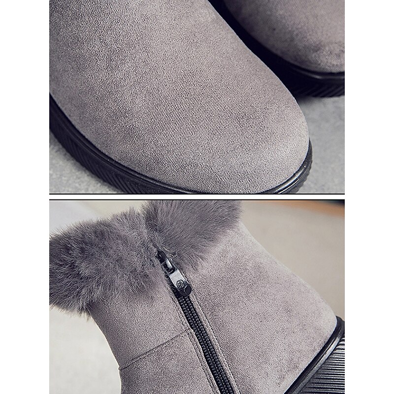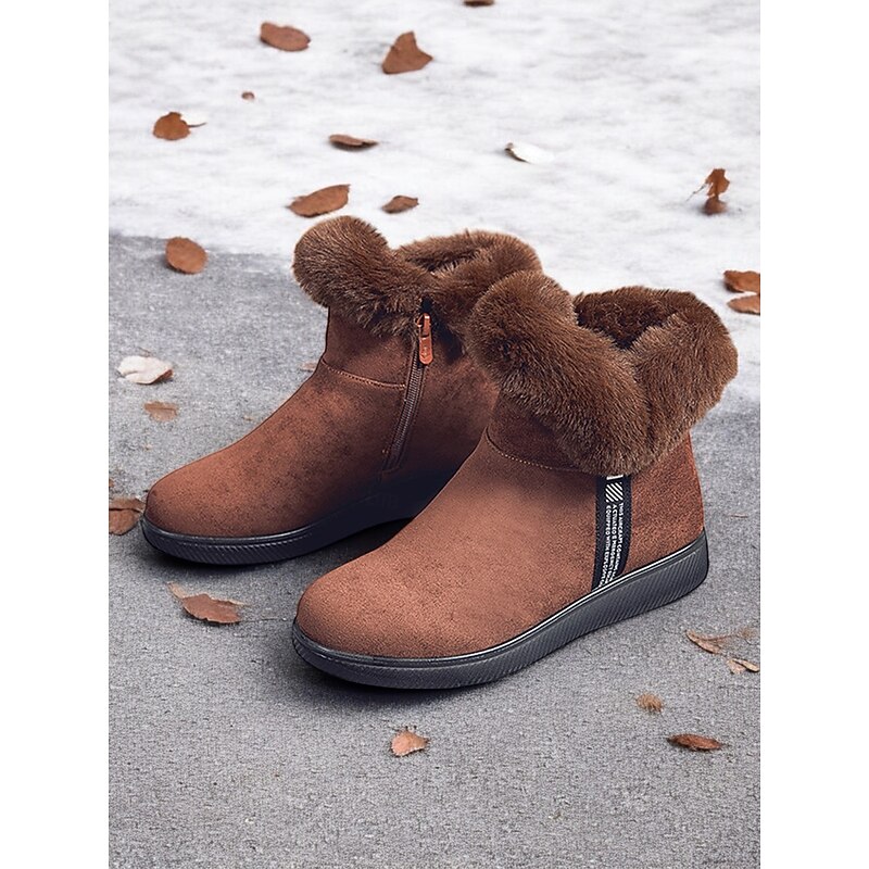 Highlights [Fabric] : Meticulously crafted from a soft velvety suede-like material complemented by a plush faux fur lining, these ankle boots offer both warmth and elegance. The durable rubber outsole enhances grip, ensuring stability on diverse surfaces during the chilly months. [Design] : These boots boast an ankle-length silhouette with a practical side zipper for effortless wear. The flat heel provides comfort for all-day wear, while the round toe shape adds a classic touch. Subtle design elements like the cozy fleece lining make them a perfect addition to your winter wardrobe. [Design Highlights] : The standout feature of these boots is the luxurious faux fur cuff that not only exudes sophistication but also provides additional warmth. The simplicity of the design is elevated by the plush texture and elegant appearance of the burgundy hue, making these boots a chic choice for both casual and outdoor settings. [Occasions] : Perfectly suited for daily casual outings or outdoor adventures in cooler weather, these boots seamlessly blend fashion with functionality. Whether it’s a leisurely walk through the park or a casual day out with friends, these boots ensure you step out in style. [Size Range] : Available in a variety of sizes from US5.5 to US10.5 / EU35 to EU42, these boots cater to a wide range of foot sizes, ensuring a comfortable fit for every wearer. Perfect for everyday use. High quality materials and excellent craftsmanship ensure long-lasting durability.
