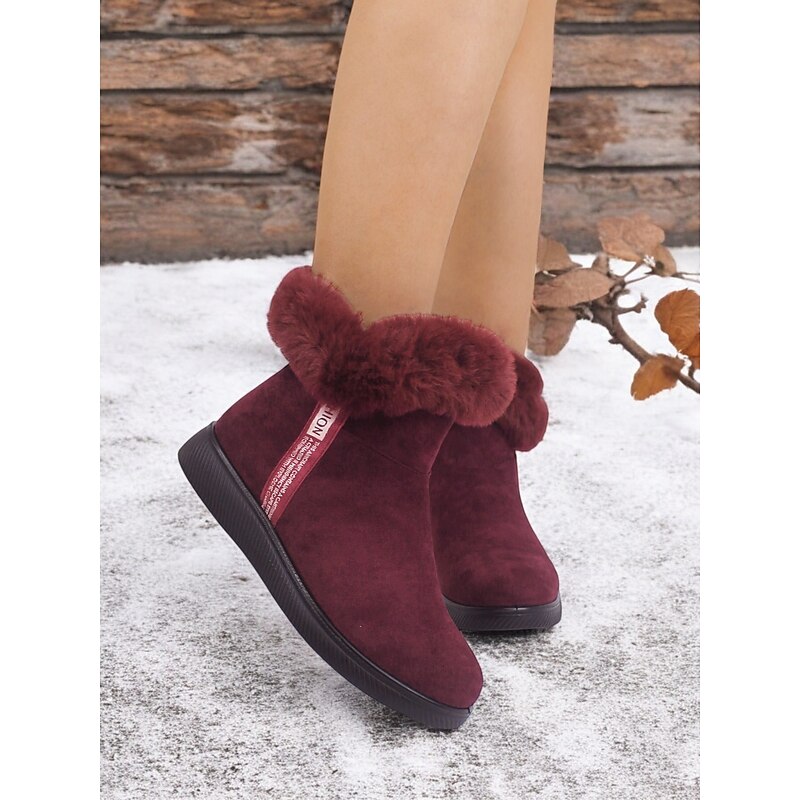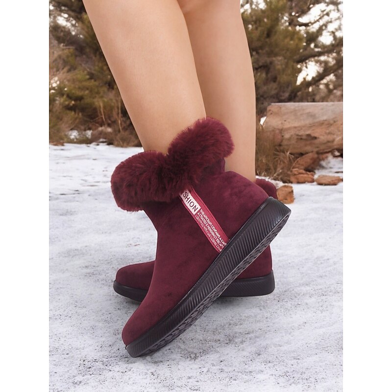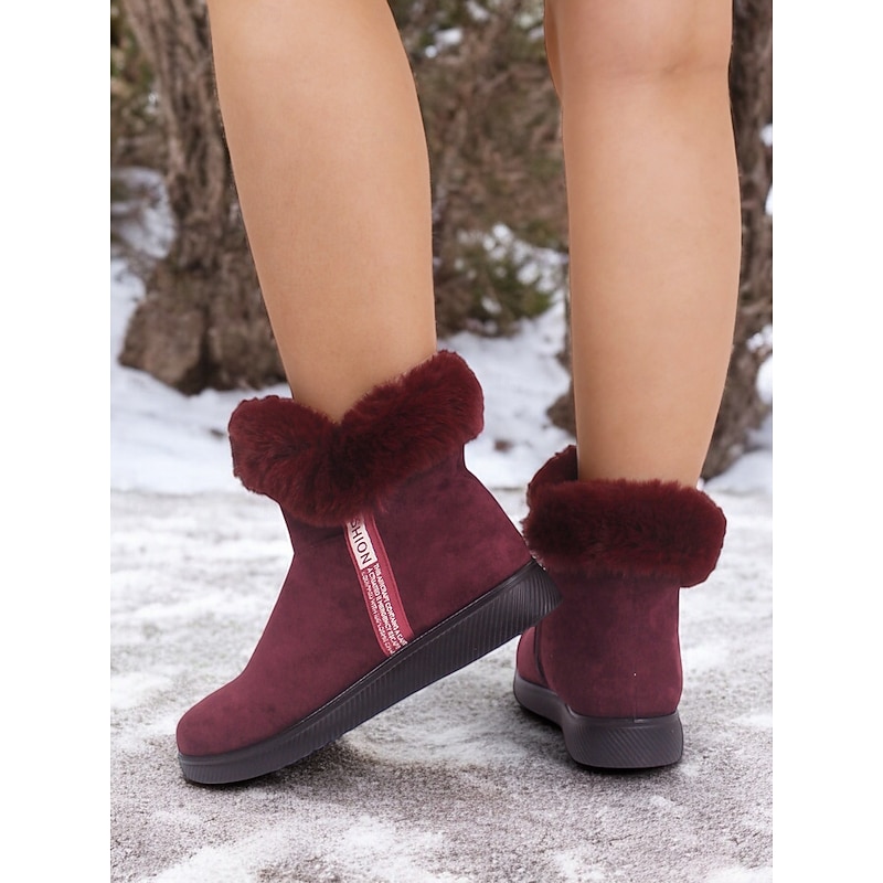 Women's Burgundy Suede Ankle Boots with Faux Fur Cuff and Non-Slip Sole – Warm Winter Shoes for Casual and Outdoor Wear