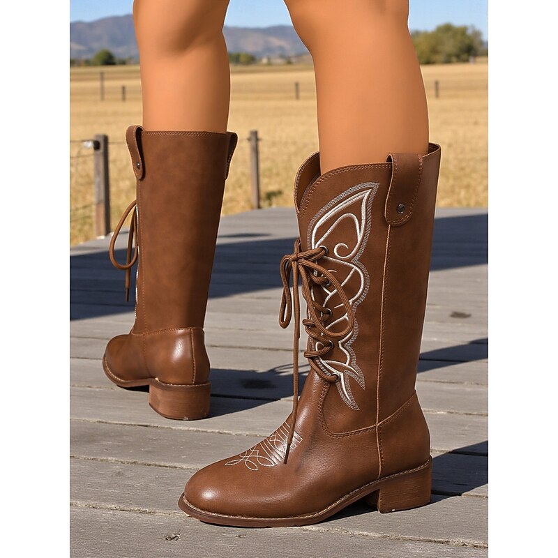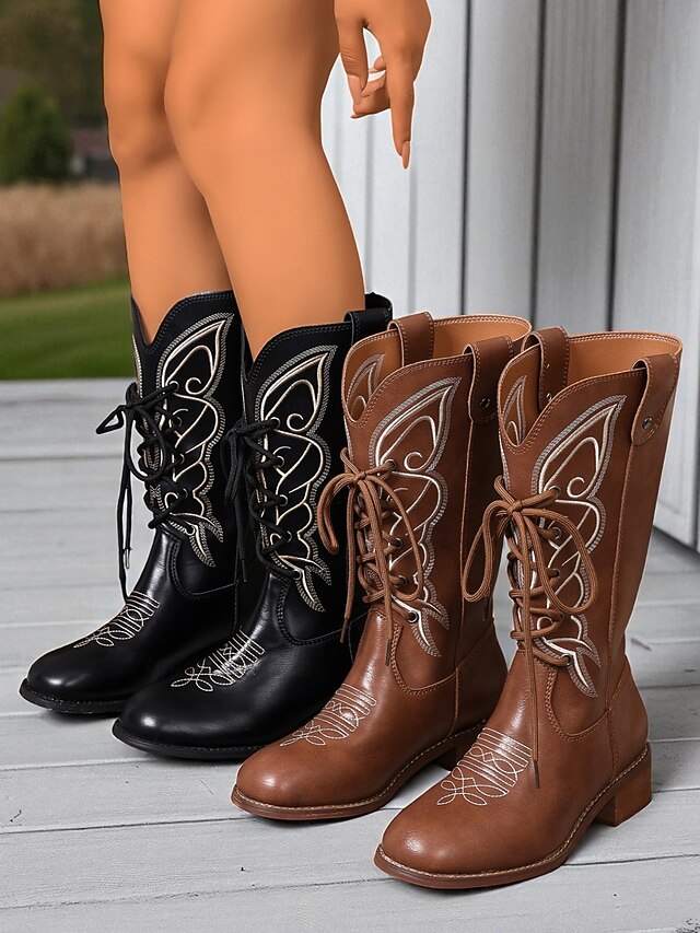 Highlights - Crafted with high-quality faux leather - Features a trendy block heel for added style and comfort - Designed with a classic round toe shape for a timeless look - Durable rubber outsole for long-lasting wear - Embrace the 2025 trend with these stylish cowboy boots