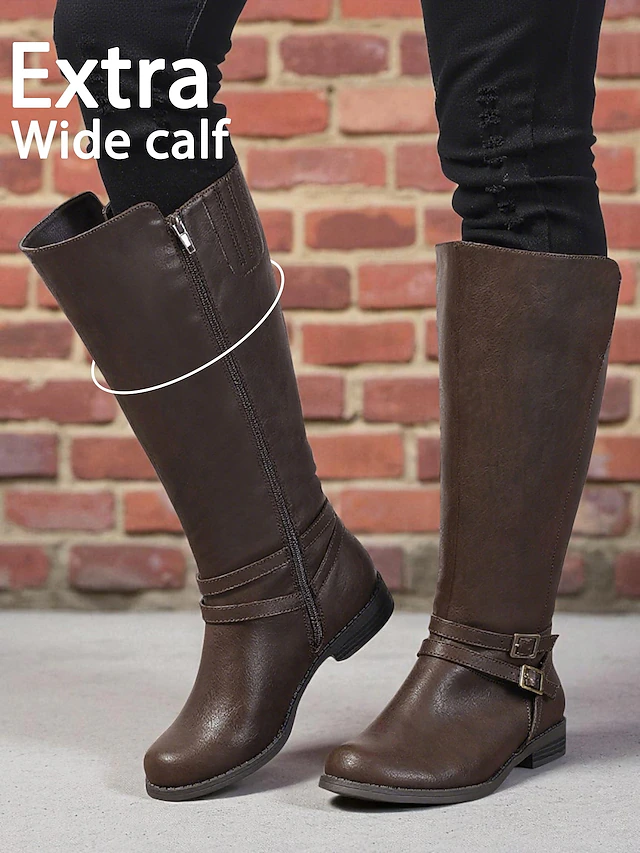 This Women's Brown Extra Wide Calf Knee High Boots with Side Zipper and Buckle – Casual Comfortable Riding Boots for Work, Streetwear and Daily Wear combines elegant design with practical functionality. Every detail has been carefully considered to ensure you get the best possible experience. The high quality construction means this product will serve you well for years to come.