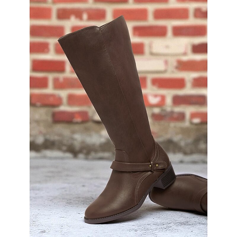 Why Choose Women's Brown Extra Wide Calf Knee High Boots with Side Zipper and Buckle – Casual Comfortable Riding Boots for Work, Streetwear and Daily Wear?
