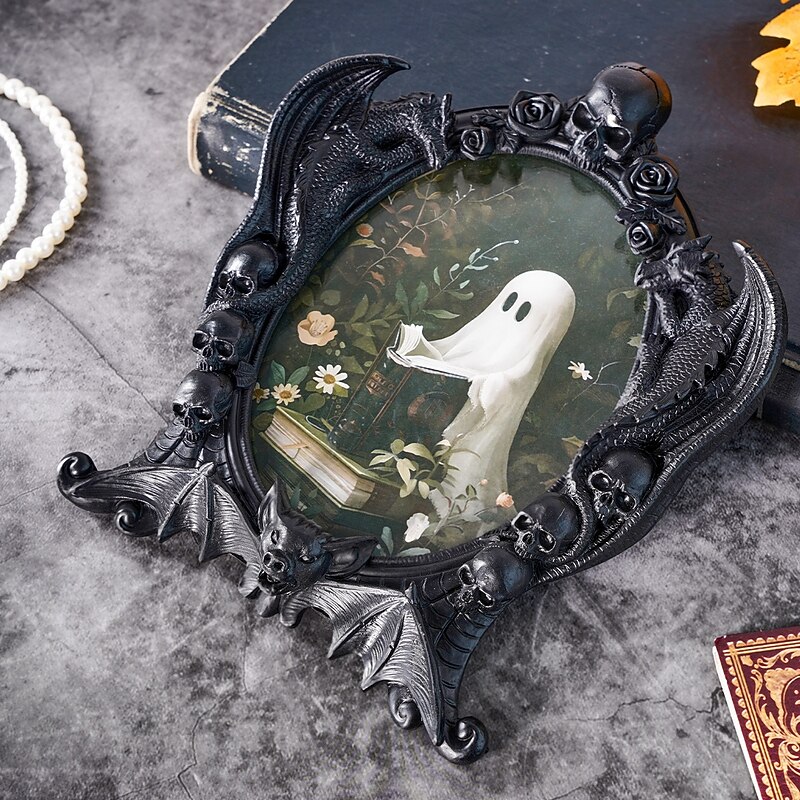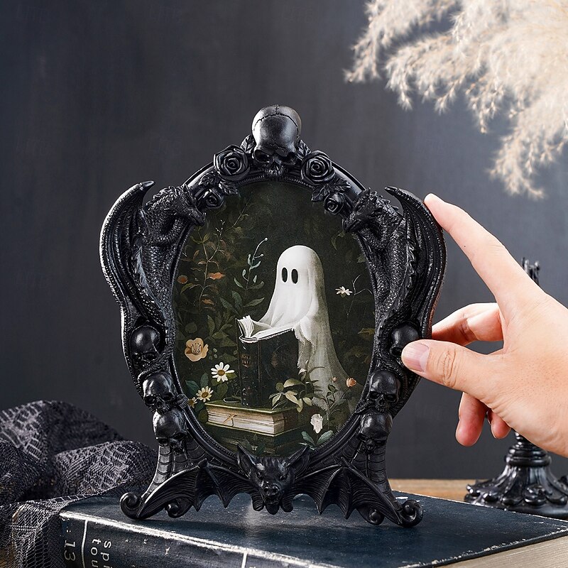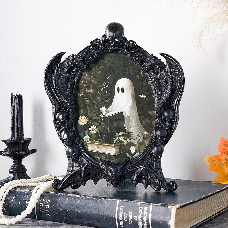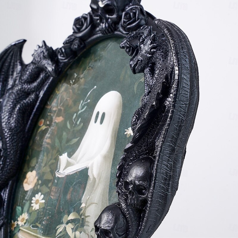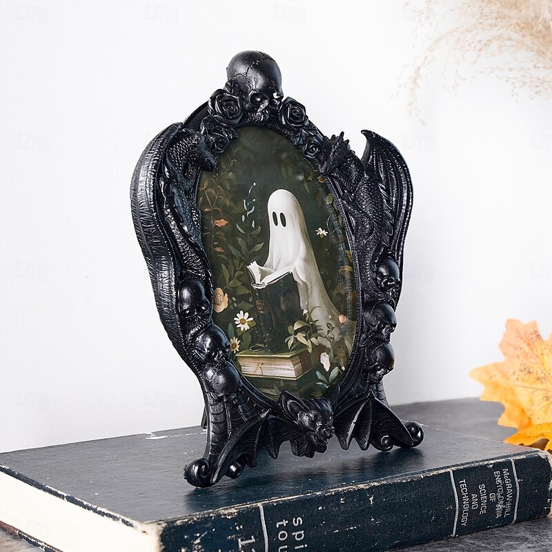 $15.49 - Halloween Ghost Photo Frame, 3D Resin Skeleton Dragon Skull Picture Frame with Spooky Book-Loving Ghost Design, Haunted House Party Decorations and Home Decor for Living Room Bedroom Study 2025. Shop for cheap Halloween Hanging & Tabletop Decorations online? Buy at lightinthebox.com on sale today!