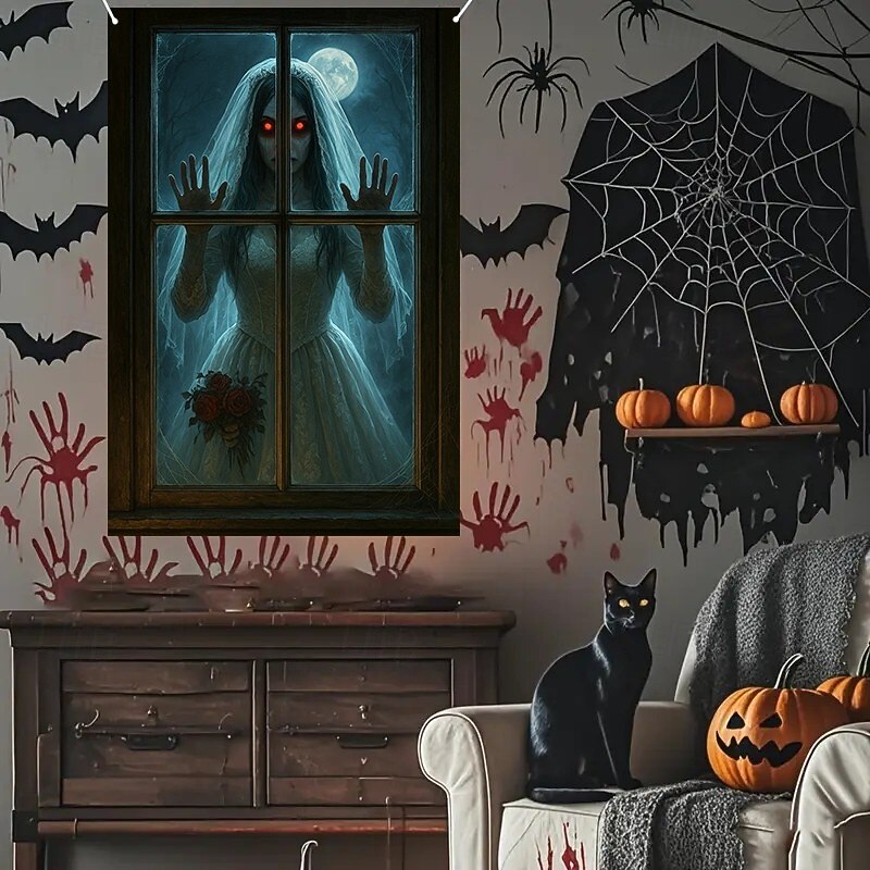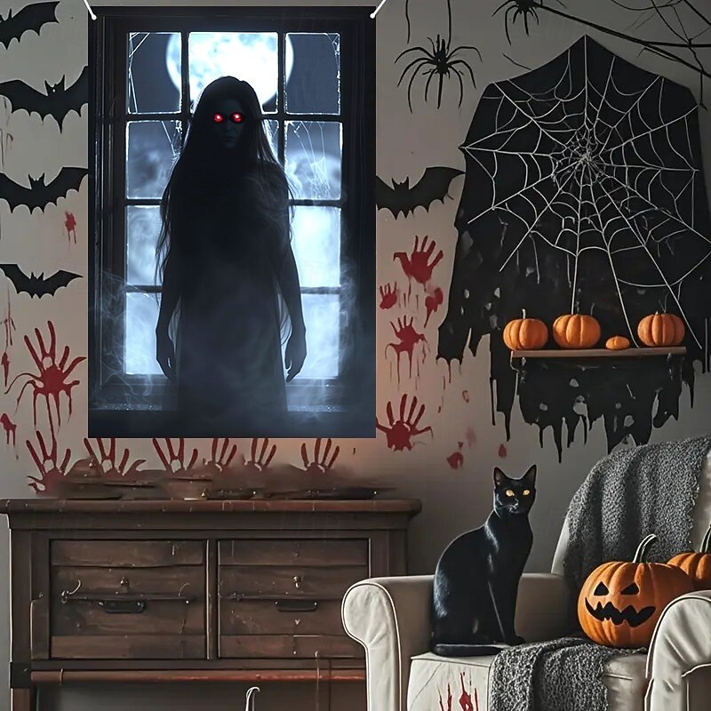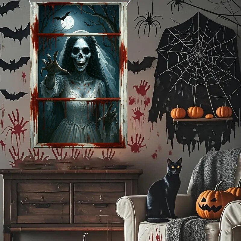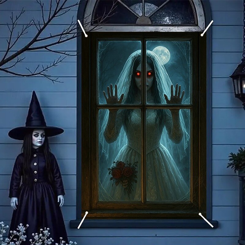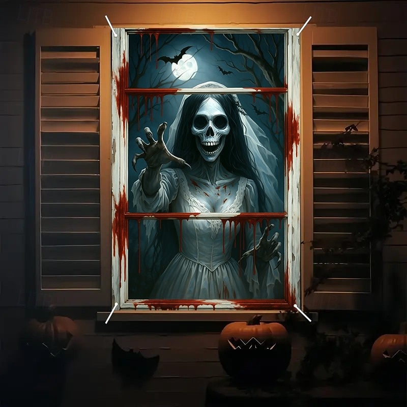 $15.99 - Halloween Window Curtain Grim Reaper Behind Bloody Wooden Planks, Creepy Door Cover, Window cover, Wall Tapestry for 2025 Halloween Haunted House Spooky Home Decoration 2025. Shop for cheap Halloween Door Covers online? Buy at lightinthebox.com on sale today!