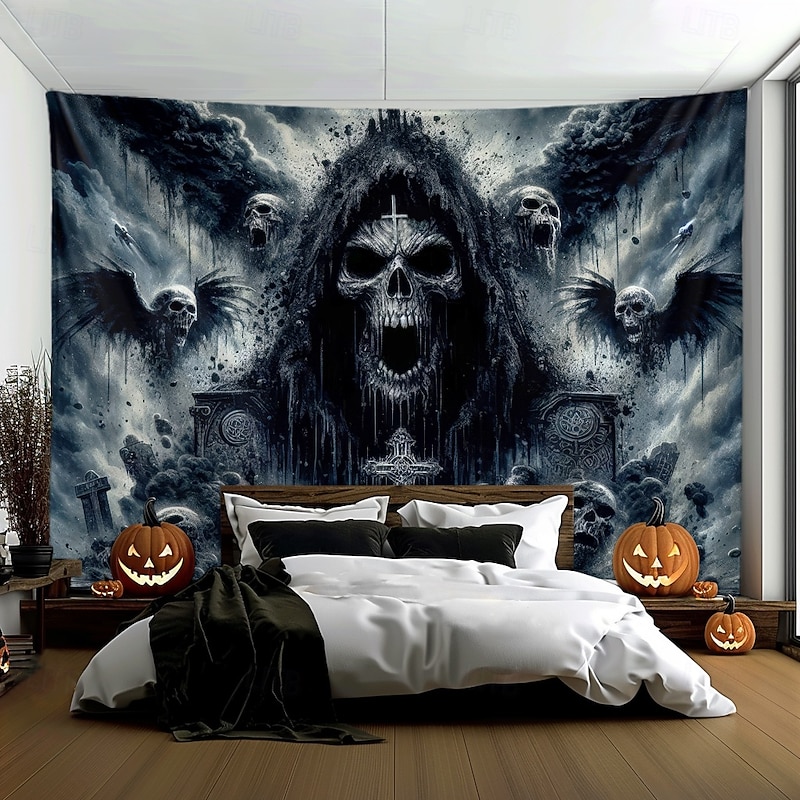 $13.99 - Halloween Hanging Tapestry Death God Photograph Backdrop Jack O Lantern Wall Art Large Tapestry Mural Decor Blanket Curtain Home Bedroom Living Room Decoration Death Selfie 2025. Shop for cheap Halloween Wall Tapestries online? Buy at lightinthebox.com on sale today!