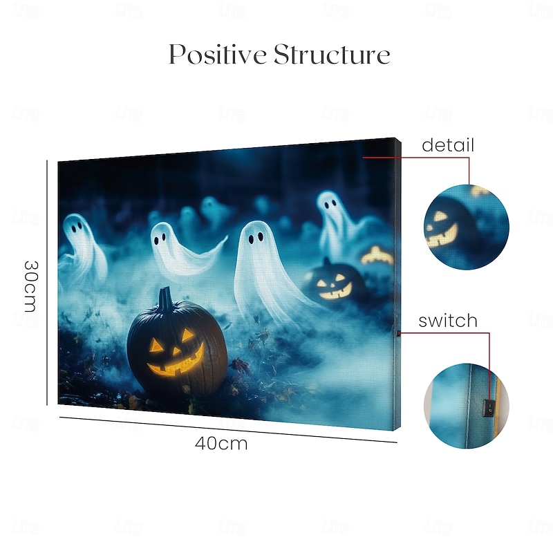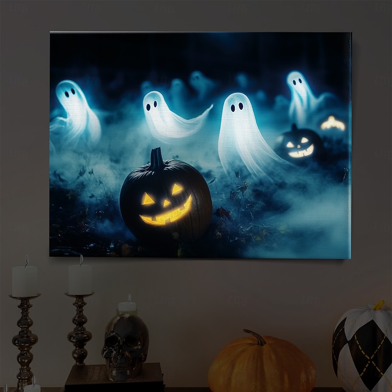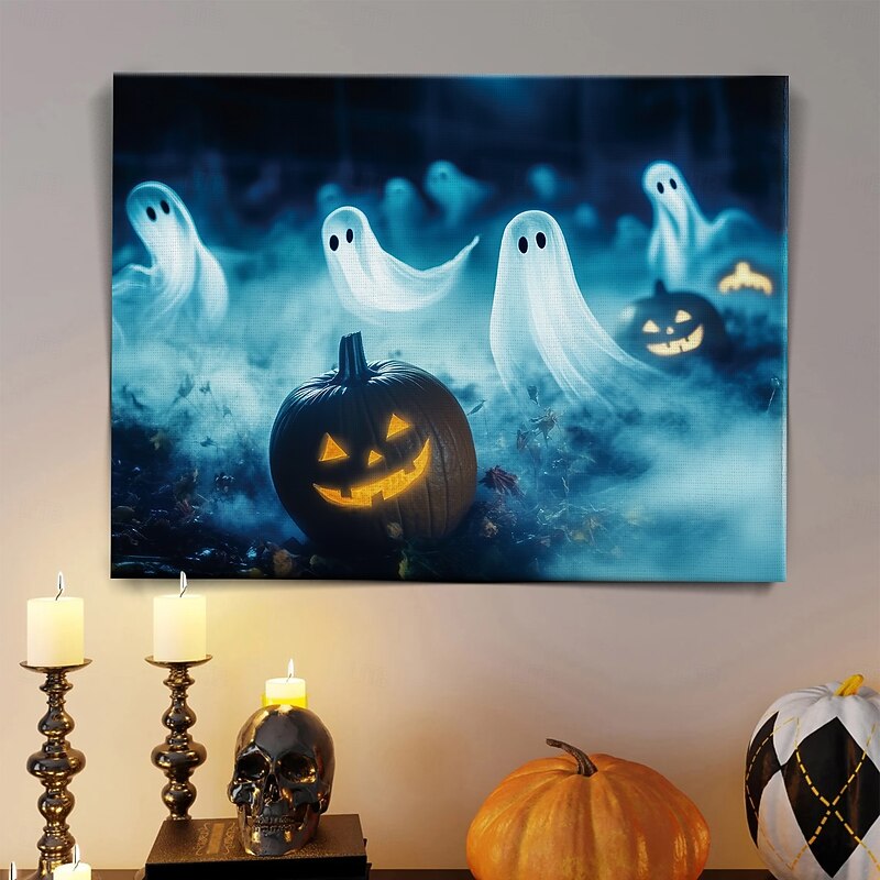 HOT ! Halloween Ghosts and Pumpkins LED Canvas Wall Art - Battery Operated Lighted Wall Decor for 2025 Halloween home decoration light livingroom and bedroom